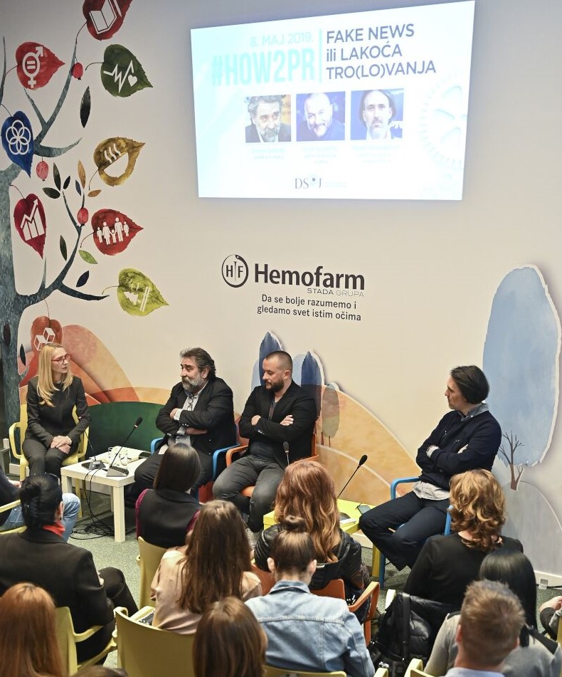9.05.2019.Održan je prvi How2PR u organizaciji Društva Srbije za odnose s javnišću, na temu Fake news ili lakoća tro(lo)vanja. Izuzetno zanimljiv panel čiji je moderator bila profesorka Univerziteta Metropolitan, dr Milica Slijepčević, a na kome su učestvovali Zoran Sekulić, direktor agencije FoNet, Ivan Ivanović, voditelj i Petar Stanojlović, profesor na FDU i reditelj RTS-a.