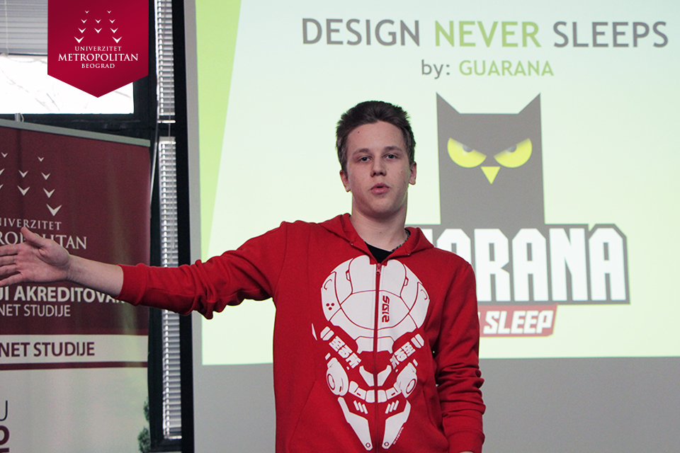 18.12.2018.Održan je prvi dizajnerski hakaton u Srbiji – Design never sleeps za srednjoškolce, u organizaciji Univerziteta Metropolitan i Guarane No Sleep. Takmičari nisu znali temu do samog početka takmičenja, koju je dodelila Guarana pod simboličnim nazivom – Study limenka limited edition. Kako je takmičenje trajalo 2 dana i 24h, svi timovi su imali dovoljno vremena da naprave svoju verziju Study limenke i osvoje vredne nagrade. Design never sleeps se održao na Univerzitetu Metropolitan u Nišu i Beogradu.
