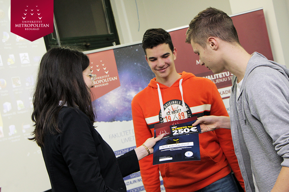 Prvo mesto i nagradu od 1.000€ za prvu godinu studija na Fakultetu digitalnih umetnosti, osvojio je tim pod nazivom „LiMETed edišn” iz Umetničke škole, u sastavu: Jovane Ćirić, Milice Jovanović, Jane Novaković i Anđele Nedeljković. Drugo mesto i nagradu od 500€ za prvu godinu studija na Fakultetu digitalnih umetnosti, pripalo je timu „Plavi piksel” takođe iz Umetničke škole: Andrea Paolillo, Ksenija Stanković, Sandra Milanović i Emilija Mladenović. Treće mesto je zauzeo tim „Four Bricks In The Wall” iz gimnazije „Bora Stanković“: Luka Filipović, Mila Stojanović, Uroš Končalović i Nikola Jovanović, sa nagradom od 250€ za prvu godinu studija na Fakultetu digitalnih umetnosti.