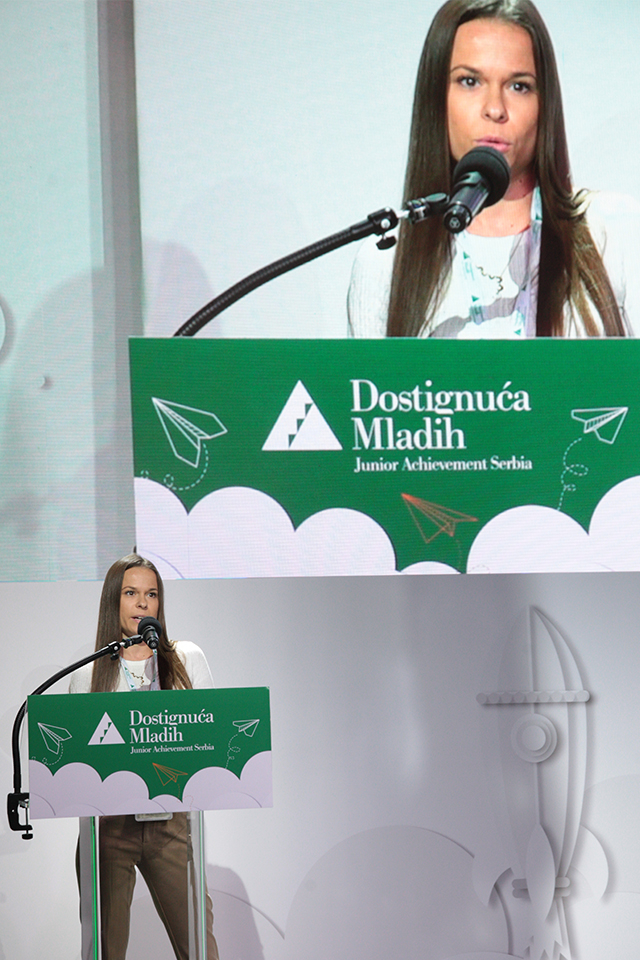 Organizacija Dostignuća mladih u Srbiji (Junior Achievement Serbia) je deo globalne mreže Junior Achievement Worldwide, osnovane 1919. godine, koja obuhvata 121 zemlju na svim kontinentima i predstavlja najveći svetski program preduzetničkog obrazovanja koji godišnje pohađa više od 10 miliona učenika. Učenici su i u prilici da kroz teorijsku i praktičnu nastavu, mentorski program, kao i niz takmičenja, sajmova i konkursa, nauče po kojim principima funkcioniše biznis i da istovremeno budu podstaknuti da osmišljavaju i razvijaju svoje preduzetničke poduhvate.