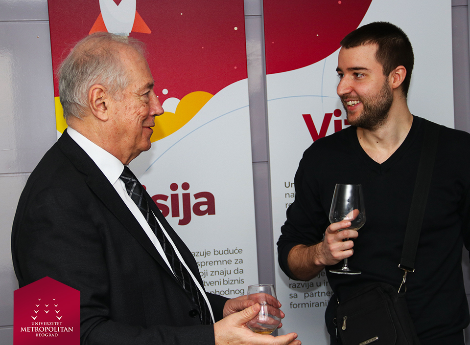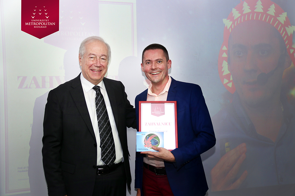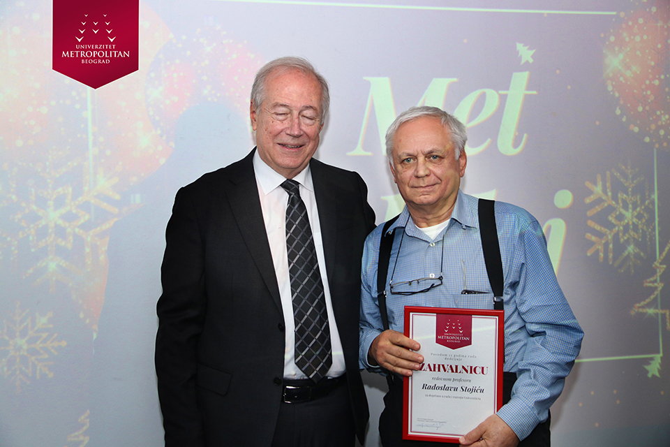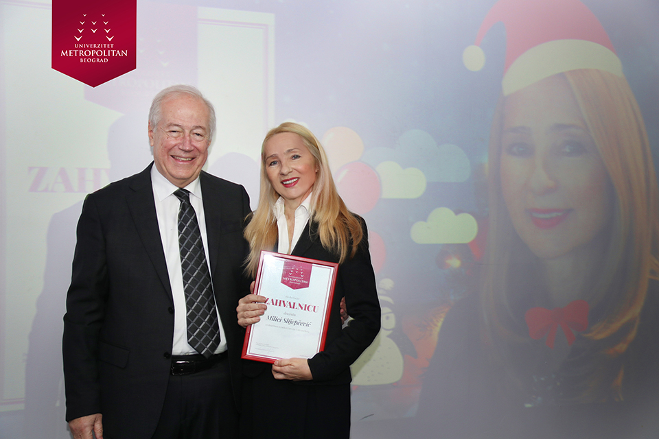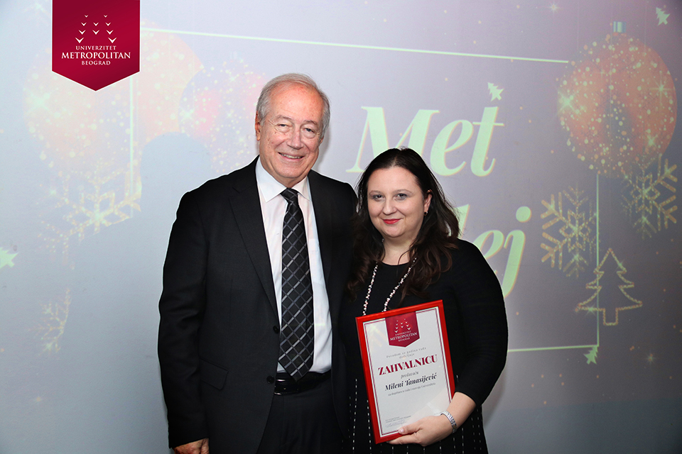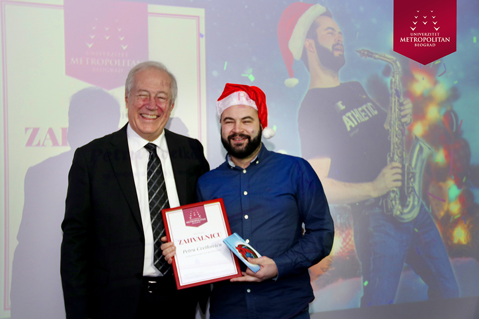 Predsednik i rektor Univerziteta Metropolitan, profesor dr Dragan Domazet se obratio prisutnima, čestitao svima na uspešnoj godini koja je iza nas, benefitima koji su ostvareni zajedničkim trudom i svečano uručio povelje i zahvalnice.