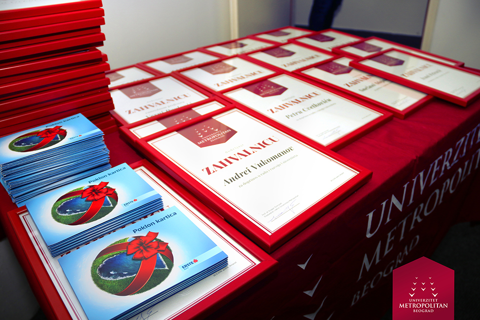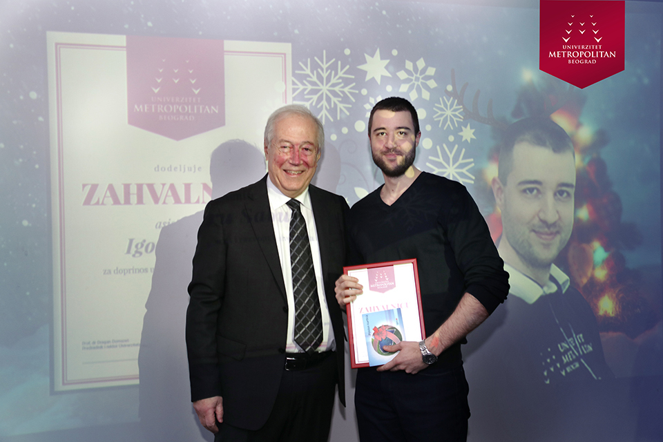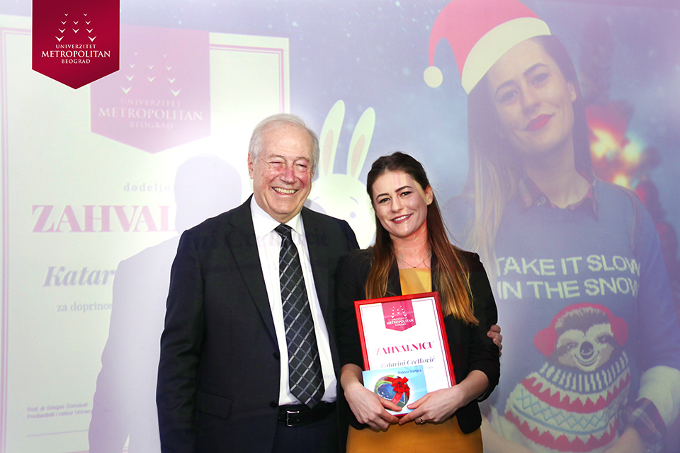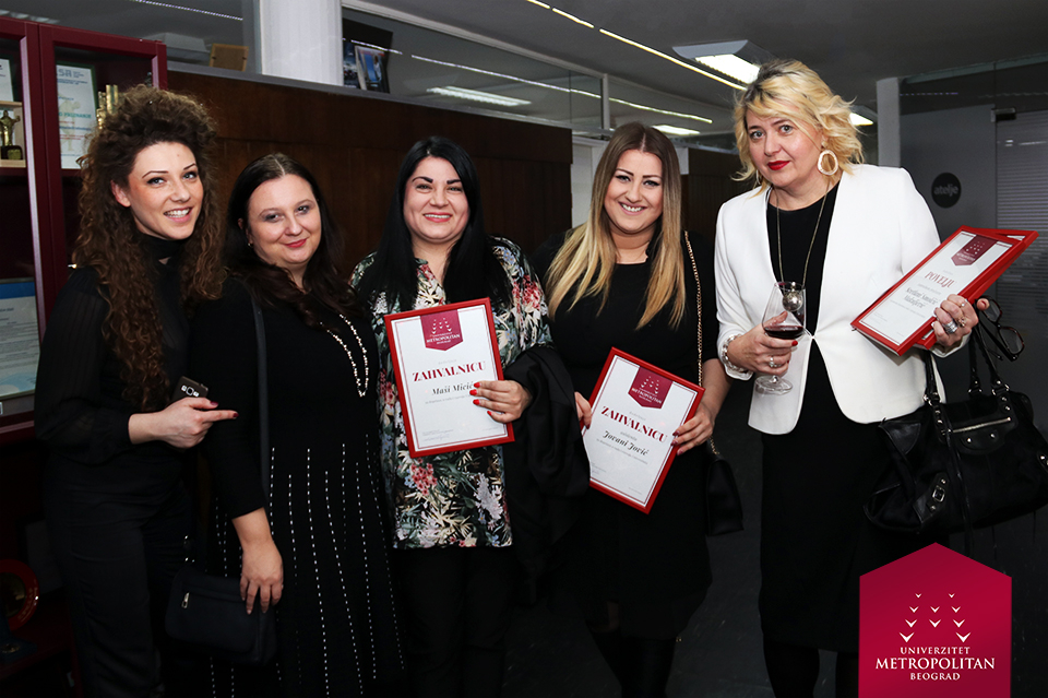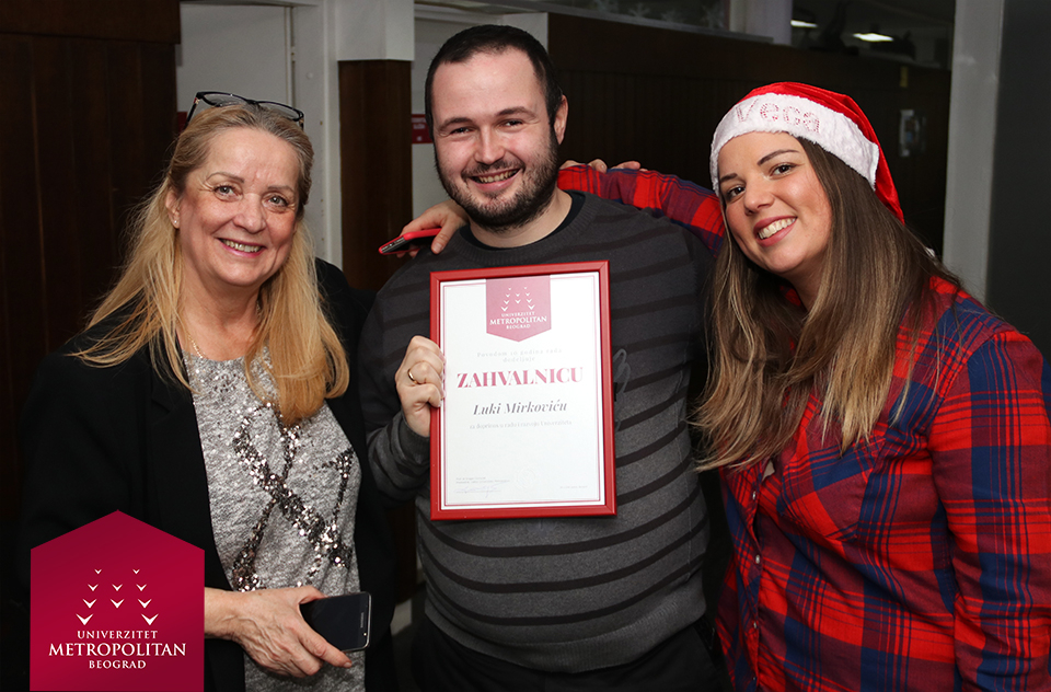 8.01.2019.Univerzitet Metropolitan je za kraj 2018. godine, organizovao svečanu proslavu za ceo kolektiv iz Beograda i Niša, gde su dodeljene povelje i zahvalnice profesorima, kao i zaposlenima koji su doprineli da rad i razvoj Univerziteta u protekloj godini bude uspešan.