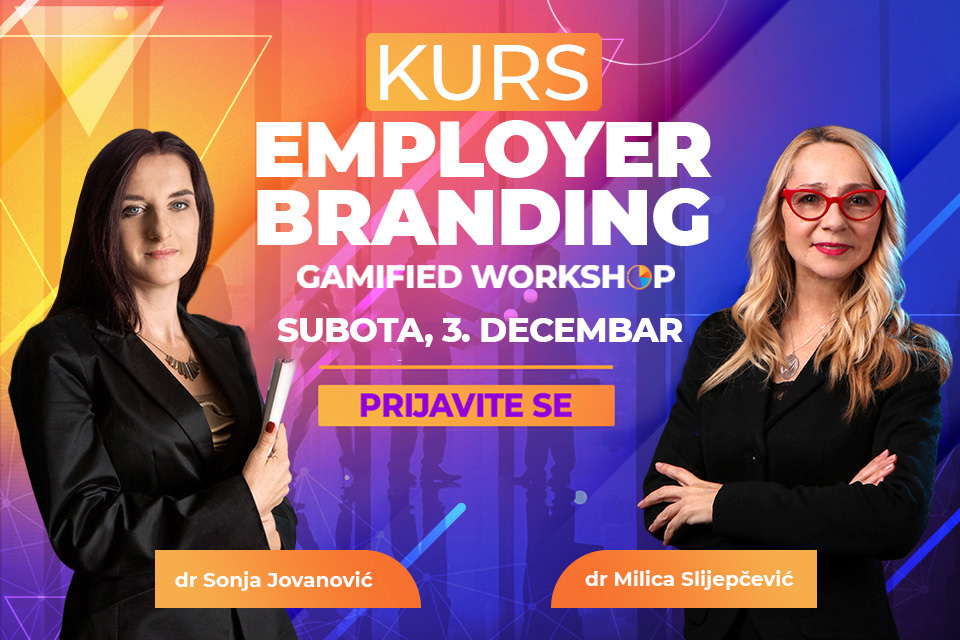 Na tržištu je sve veća potraga za vrhunskim employer branding menadžerima, jer se kompanije bore da privuku talente. Ključni resurs i ključna konkurentska prednost su zaposleni! Iz tih razloga, sam cilj ovog kursa je da polaznici prođu kroz ceo proces Employer Branding razmišljanja, planiranja i odlučivanja, i da kroz radionicu steknu lično iskustvo i ponesu konkretna znanja za primenu u svojoj organizaciji. Kurs je namenjen zaposlenima u HR sektoru, marketingu, vlasnicima malih i srednjih preduzeća, preduzetnicima i svima onima koji žele da preduprede negativne posledice pogrešnog izbora kandidata i koji žele da se prezentuju na tržištu radne snage kao poželjan poslodavac.
