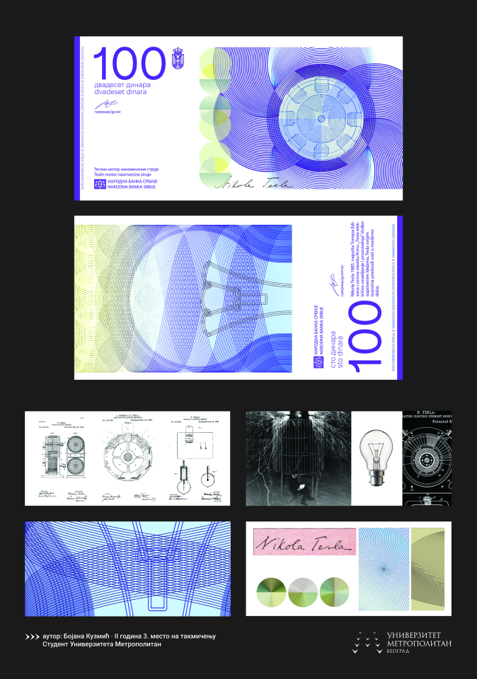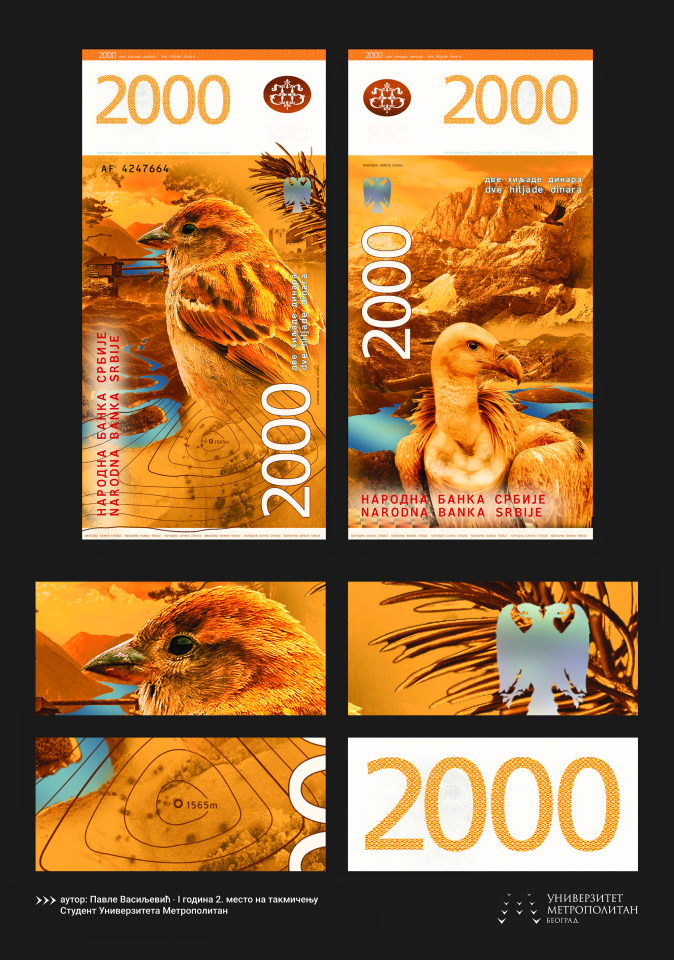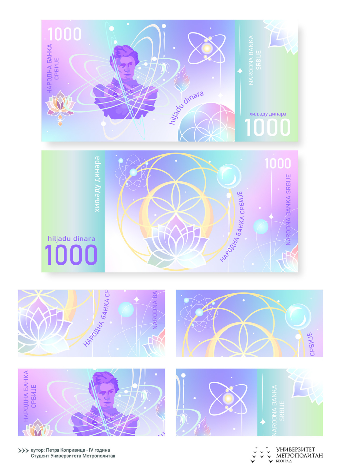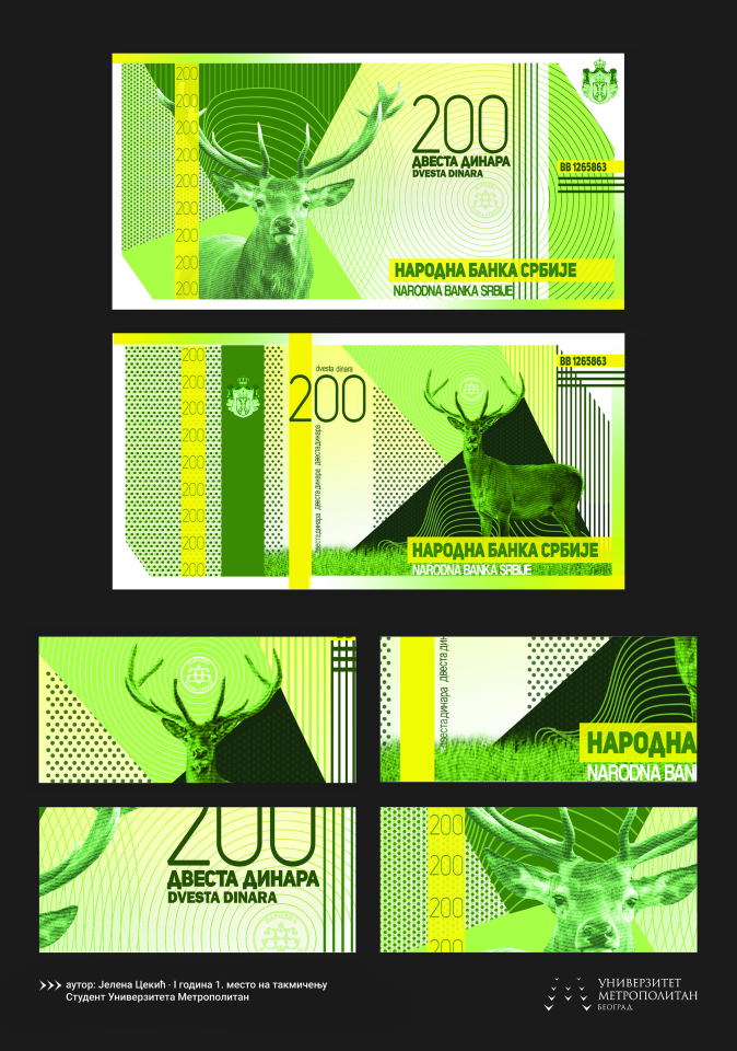 Uz to je posetiocima izložbenog prostora galerije Narodne banke Srbije, putem animirane forme, dat uvid i u detalje ostalih idejnih rešenja sa takmičenja. Autentični i originalni u svojim zamislima, studenti su pronalazili inspiraciju u bogatoj tradiciji, istoriji, nauci, kulturi, umetnosti, ali i prirodnim lepotama Srbije. Trudeći se da u isto vreme ispune tehničke standarde papirnih novčanica i njihov praktičan, namenski aspekt, težili su dostizanju inovativnih i visoko estetskih idejnih rešenja.