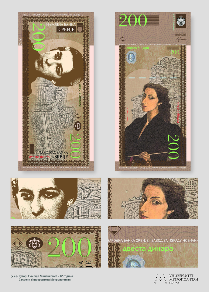 18.11.2024.Izložba „Moja novčanica“ predstavlja prikaz idejnih rešenja sa kojima su studenti Fakulteta digitalnih umetnosti, Univerziteta Metropolitan učestvovali na istoimenom takmičenju organizovanom od strane Univerziteta Metropolitan, a na inicijativu i u saradnji sa Narodnom bankom Srbije. Za ovu priliku napravljen je uži izbor od dvadeset radova realizovanih tehnikom digitalne štampe na velikim formatima koji najbolje oslikavaju raznovrsne pristupe mladih, kreativnih budućih dizajnera ovoj zanimljivoj temi.