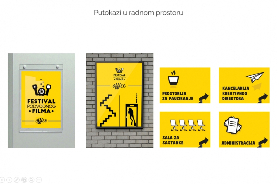 Ninin završni rad na predmetu Vizuelni identitet, imao je za temu – Festival podvodnog filma i za potrebe njegovog definisanja je kreirala knjigu grafičkih standarda, koja je osim osnovnih komponenti identiteta kao što su logo i poslovni papiri, obuhvatila: promotivne materijale, grafičko obeležavanje prostora, brošuru i plakat.
