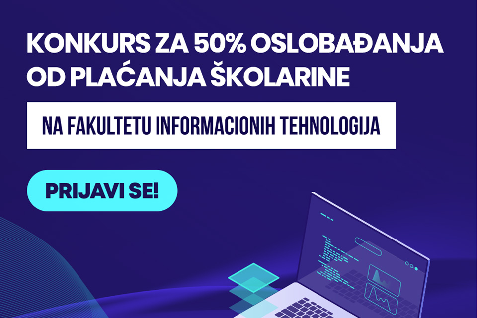 Univerzitet Metropolitan organizuje konkurs za umanjenu školarinu od 50% u u okviru četvorogodišnjih studija na jednom od studijskih programa Fakulteta informacionih tehnologija, za 10 učenika sa istaknutim sklonostima ka informacionim tehnologijama i koji imaju ambiciju da svoj talenat nastave da razvijaju u toku studija.