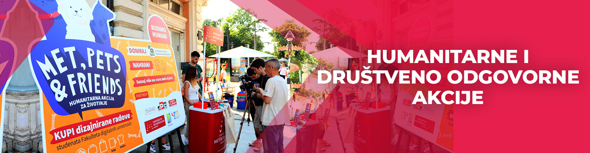 Univerzitet Metropolitan organizovao je niz humanitarnih akcija MET, Pets & Friends za – Udruženje za brigu o životinjama grada Beograda „BETA BEOGRAD“. Kao društveno odgovorna institucija, koja je i pet friendly, Univerzitet Metropolitan učestvuje i podržava akcije koje se tiču same zaštite životinja i njihovih prava. Ovim humanitarnim akcijama želimo da podstaknemo svest građana za brigu o ugroženim životinjama.