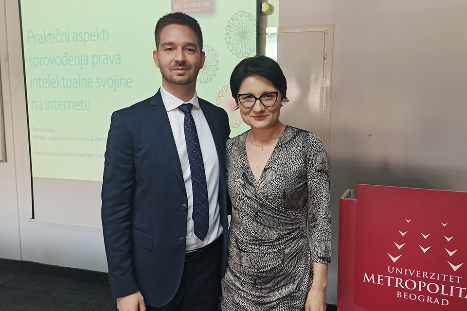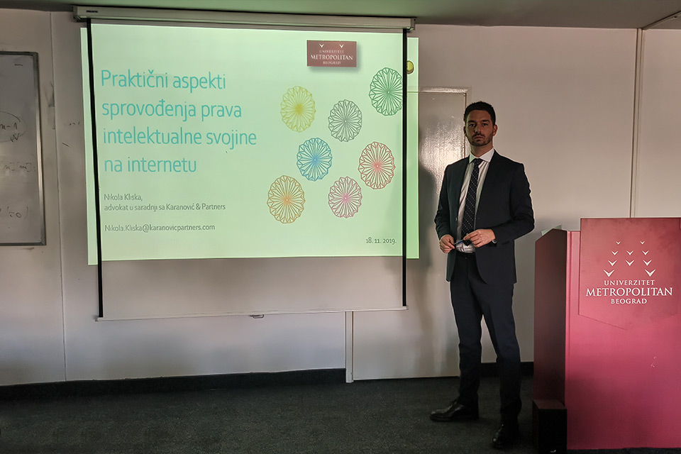 Održano je gostujuće predavanje na Univerzitetu Metropolitan u Beogradu, na aktuelnu temu – Praktični aspekti sprovođenja prava intelektualne svojine na internetu, o kojoj je govorio Nikola Kliska, eminentni stručnjak sa dugogodišnjim iskustvom i advokat u saradnji sa Karanović & Partners, i arbitar pri Komisiji za rešavanje domenskih sporova.