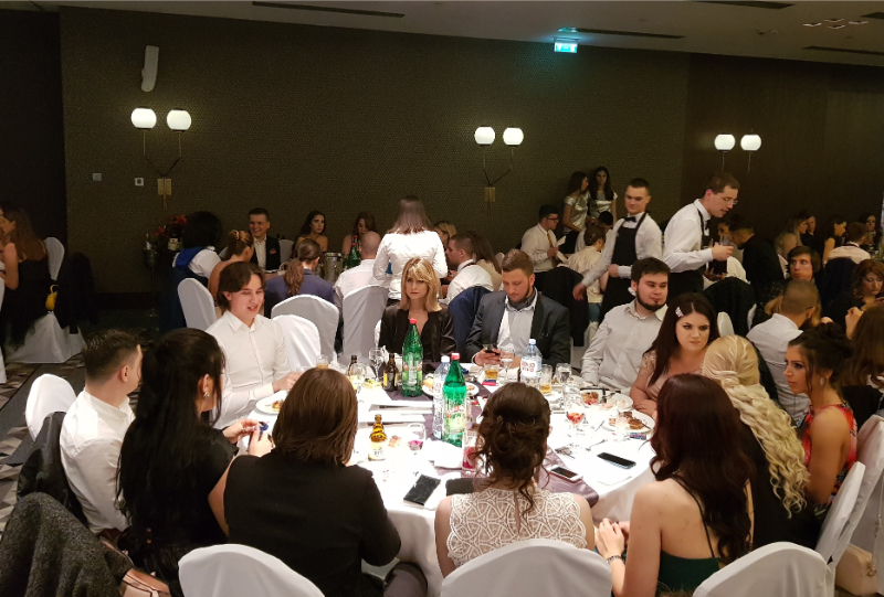 I ove godine studenti našeg Univerziteta proveli su nezaboravno veče u hotelu Metropol, u Beogradu. Okupljanje je počelo oko 20:45h, a zvanični ulazak je bio od 21h. Po ulasku je bilo organizovano slikanje u prelepom i prostanom holu hotela. Svi studenti su bili svečano obučeni kako i dolikuje ovakvom događaju.