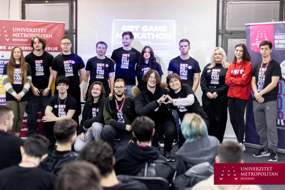 10.12.2025.Tokom proteklog vikenda uspešno je održan MET GAME HACKATHON powered by Mad Head Games, u organizaciji Univerziteta Metropolitan u Beogradu i Nišu. Događaj je okupio najkreativnije srednjoškolce iz cele Srbije, koji su imali zadatak da za samo 24 sata kreiraju video igru.