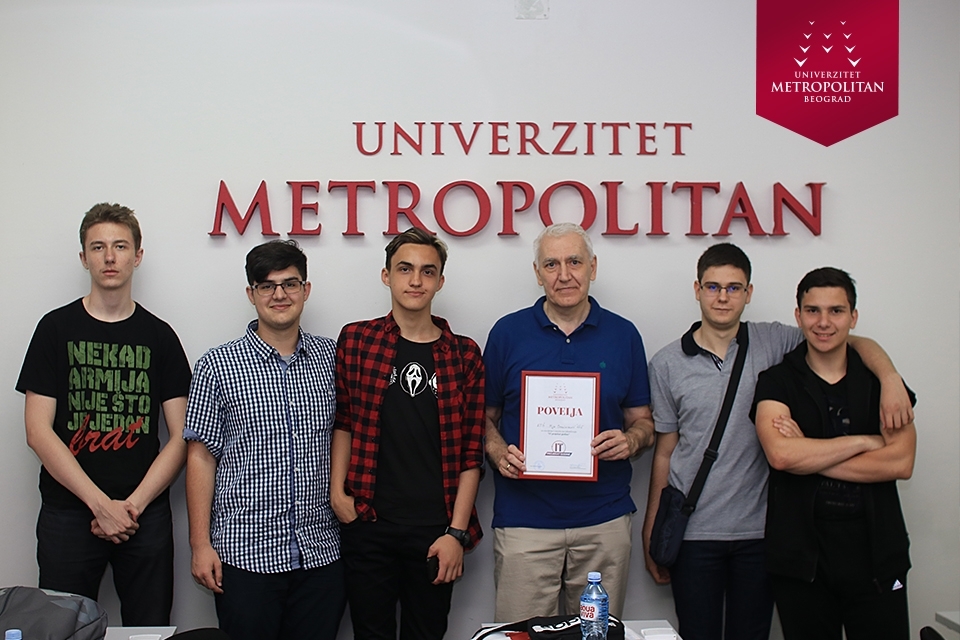 18.10.2018.Svečano su uručene nagrade Elektrotehničkoj školi „Mija Stanimirović“ iz Niša za pobedu na takmičenju za „IT projekat godine“. Predsednik i rektor Univerziteta Metropolitan, profesor dr Dragan Domazet je zajedno sa direktorom Poslovno-obrazovnog centra UM-a u Nišu, Goranom Stamenovićem uručio laptop računar u vrednosti od 50.000 dinara, direktoru škole Aleksandru Stevanoviću.