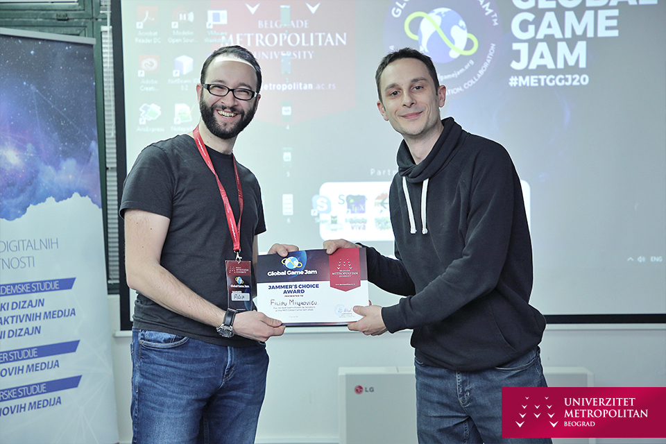 Nagrade koje su dodeli mentori su: BEST TEAM SPIRIT AWARD, koja je pripala timu – Dangubitelji (Vasilije Janković, Ilija Bogdanović, Matija Zdravković, Uroš Živković i Milan Černe), MOST FRESH LOOK AWARD pripala je timu – M&D (David Ranđelović, Marko Kostić i Lazar Radivojević). I takmičari su imali priliku da sami glasaju za nagradu – JAMMER’S CHOICE AWARD, koja je pripala Filipu Miljkoviću, kao gejmeru koji se individualno takmičio na GGJ 2020.