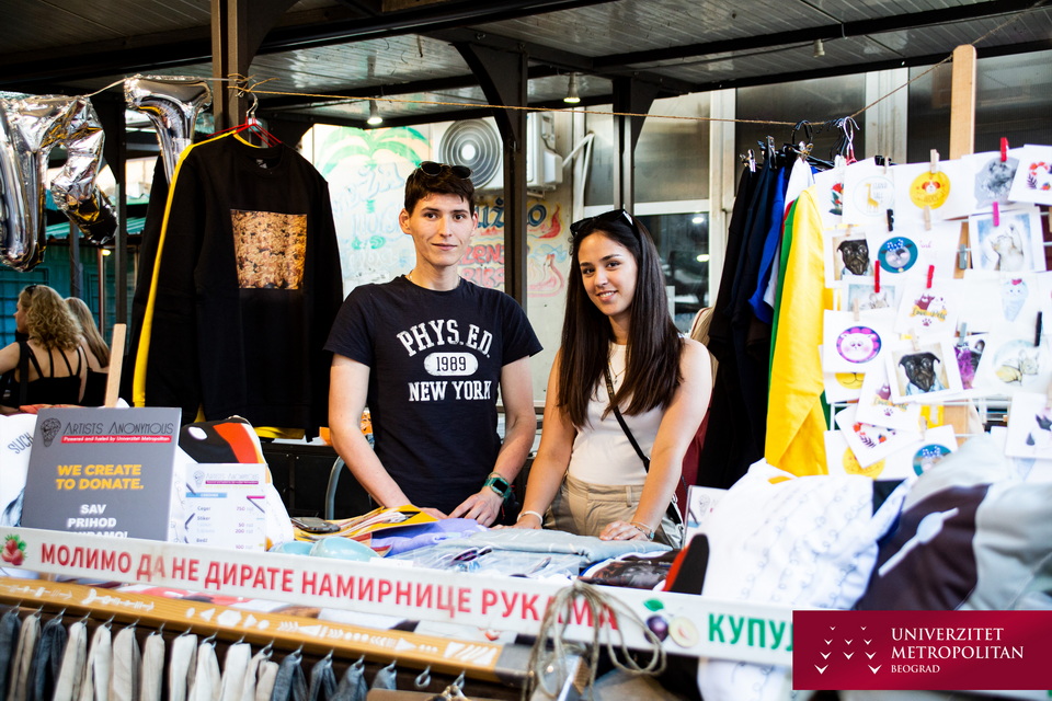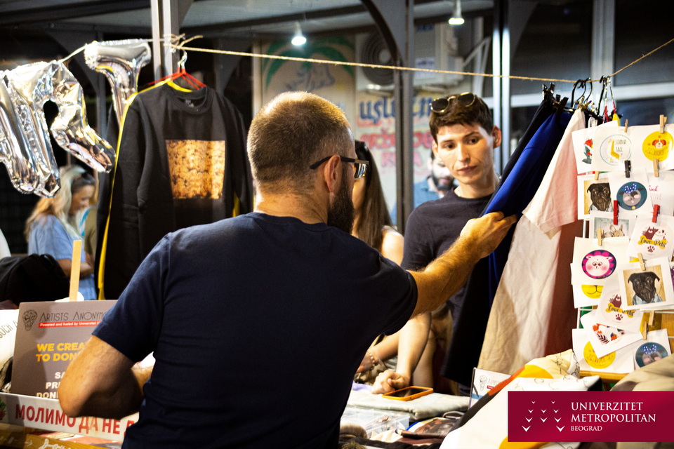4.07.2023.#1 humanitarni shop ARTISTS ANONYMOUS, fueled and powered by Univerzitet Metropolitan, učestvovao je na Beogradskom noćnom marketu, najvećem festivalu dizajna, zanatstva, hrane i pića, na pijaci Kalenić, u petak 30. juna.