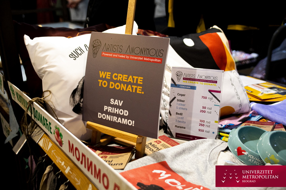 Svi posetioci Beogradskog noćnog marketa, na ARTISTS ANONYMOUS štandu, mogli su da kupe specijalni MERCH, koji su dizajnirali naši studenti Fakulteta digitalnih umetnosti i učestvuju u posebnoj humanitarnoj akciji! Sav prihod od prodaje biće usmeren onima kojima je pomoć najpotrebnija!