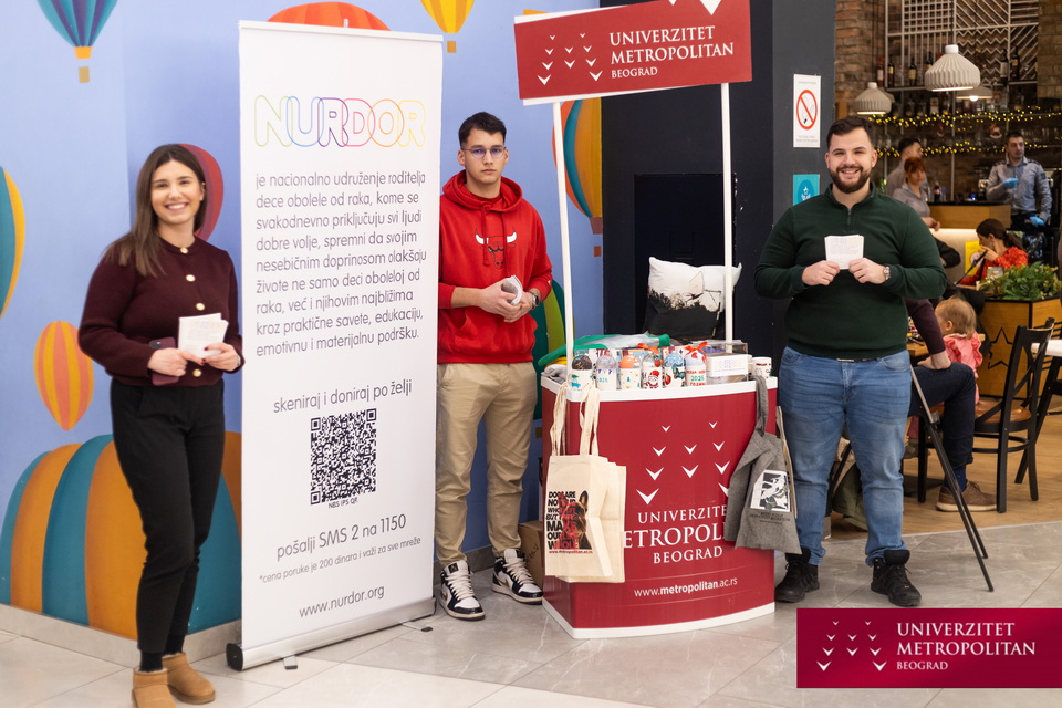 30.12.2024.Ovog vikenda u Delta Planet-u u Nišu, održana je humanitarna akcija koju je organizovao Univerzitet Metropolitan u saradnji sa Udruženjem NURDOR, pružajući pomoć mališanima kojima je ona najpotrebnija. Posetioci su imali jedinstvenu priliku da se uključe i podrže ovu plemenitu inicijativu kupovinom proizvoda sa štanda „Artists Anonymous“.