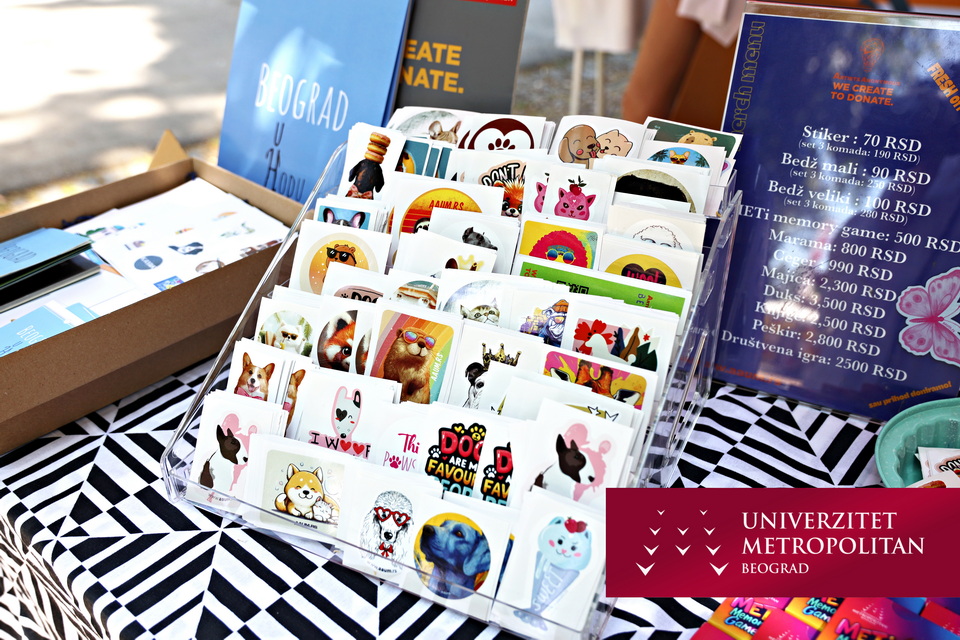 Na štandu Artists Anonymous powered by Univerzitet Metropolitan predstavljena je potpuno nova i limitirana kolekcija proizvoda za kućne ljubimce, koju su dizajnirali talentovani studenti Fakulteta digitalnih umetnosti UM. Svaki kupljeni komad obeležio je vaš doprinos humanitarnoj misiji – sav prihod uplaćuje se organizaciji Animal Rescue Serbia, koja svakodnevno pomaže napuštenim i povređenim psima i omogućava njihovo udomljavanje.