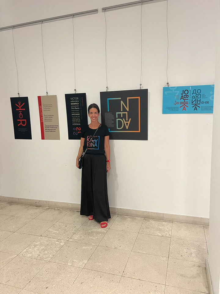 Iako profesorke rade u različitim medijima i imaju potpuno drugačiju poetiku, na ovoj izložbi obe istražuju ljudski identitet: Neda kroz tipografsko istraživanje upotrebom autorskog fonta “Viktor”, a Katarina kroz figuru princeze Margarete (inspirisana Velaskezovom slikom “las Meninas”) koju je predstavila u različitim medijima.