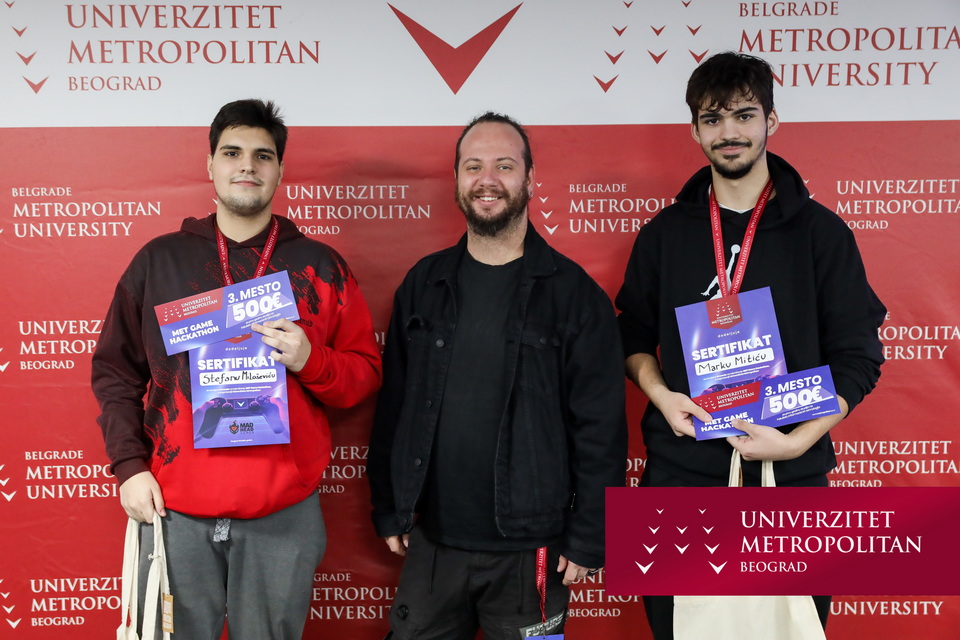 Najbolje plasirani timovi su nagrađeni vaučerima za dalje školovanje na Univerzitetu Metropolitan, dok su vredne robne nagrade stigle od partnera, MAD Head Games-a, kojima se zahvaljujemo na dugogodišnjoj podršci i saradnji.