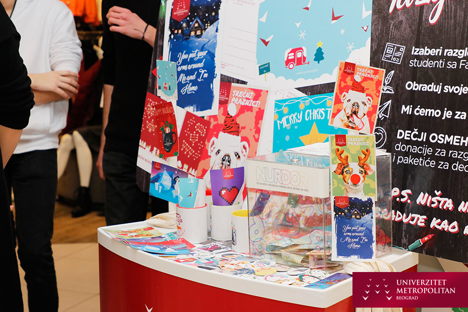 8.01.2020.Univerzitet Metropolitan je za kraj 2019. godine održao humanitarne akcije u Beogradu i Nišu, gde su prikupljena novčana sredstva za Udruženje NURDOR i mališane kojima je pomoć najpotrebnija. Sugrađani su mogli da daju svoj doprinos i obraduju kako sebi drage osobe slanjem novogodišnjih razglednica, tako i dobrovoljnim prihodom pomognu NURDOR-u.