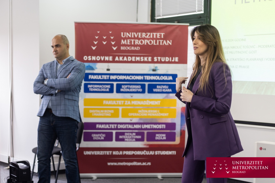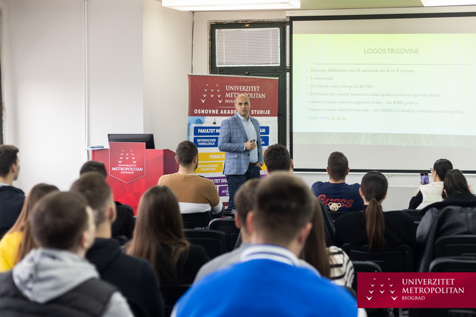 Miloš Milutinović, izvršni direktor kompanije Logos trgovine, preneo je studentima bogato iskustvo iz oblasti strateškog planiranja i vođenja timova u trgovinskom sektoru. Moderator predavanja bila je profesorka Fakulteta za menadžment Univerziteta Metropolitan, Marija Nikolić Tošović.