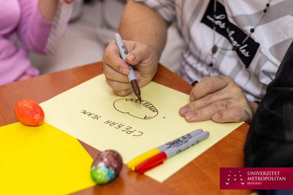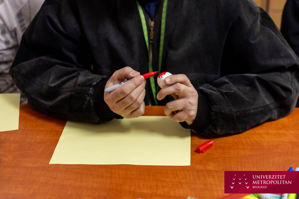 Radionici su se sa puno entuzijazma pridružili studenti sa smera Grafički dizajn u Nišu. Zajedno sa članovima udruženja pravili su uskršnje čestitke, ukrašavali jaja i delili osmehe kroz zajednički rad. Posebnu radost učesnicima su doneli MET pokloni koje su studenti pripremili za sve prisutne.