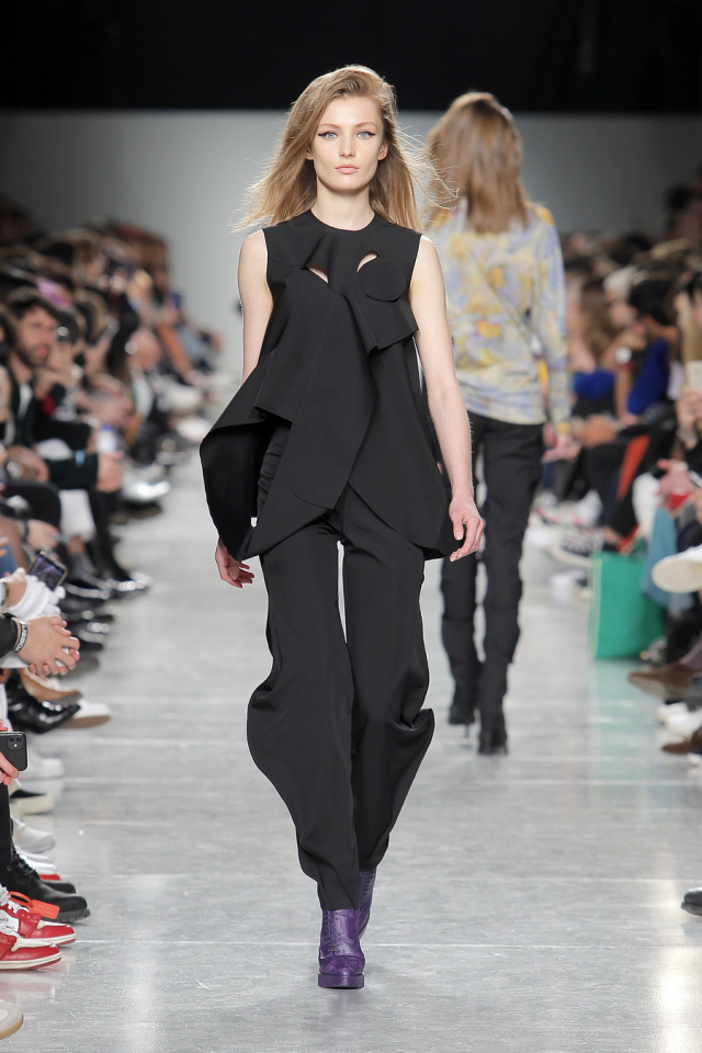 Kolekcija za jesen/zimu je pretežno tamna, kolorit se kreće od crne boje, koja preovlađuje kolekcijom, preko jarko plave i do višebojnih, protkanim lureksom i štampanim floralnim materijalom. Kao što je skoro uvek slučaj, i u novoprikazanoj kolekciji profesora Modnog dizajna, Aleksandra Protića postoji ta neobična igra oštrih vs. fluidnih formi, koja kao i uvek fascinira sve ljubitelje mode, ali i daje unikatnost modnog dela uspešnog kreatora.