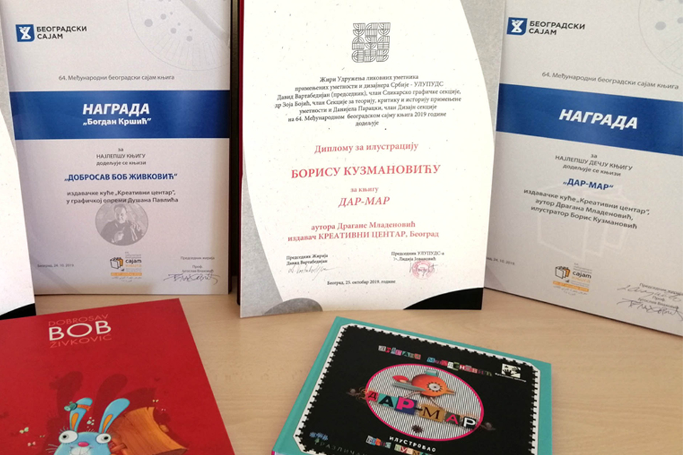 30.10.2019.Profesor Fakulteta digitalnih umetnosti Univerziteta Metropolitan, Boris Kuzmanović je ilustrovao knjigu i zbirku pesama za decu „Dar-mar“, Dragane Mladenović u izdanju Kreativnog centra, i na ovogodišnjem 64. Beogradskom sajmu knjiga dobio vrednu nagradu ULUPUDS-a za najbolju ilustraciju.