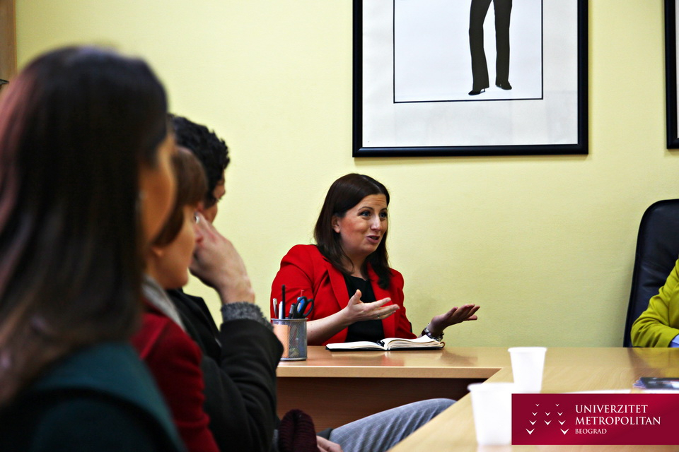 Poseta je bila izuzetno dobro organizovana i sastojala se iz tri dela. U prvom bloku, Afrodita Bajić, osnivač, vlasnik i zamenik direktora modne kuće, podelila je sa studentima svoje iskustvo o tome kako je nastao AMC, kako se razvijao brend i gde je sada, a gde želi da brend AMC bude u budućnosti. Posebno je istakla važnost pristupa poslu, kao i činjenicu da biti vlasnik znači samo više posla i odgovornosti, jer je važno da svojim primerom pokažete da poštujete disciplinu. „Ako dođete na posao već u 7:05h, znači da ste zakasnili i da treba da se vratite kući“, metaforički je objasnila svoj pristup poslu i biznisu gospođa Afrodita Bajić.