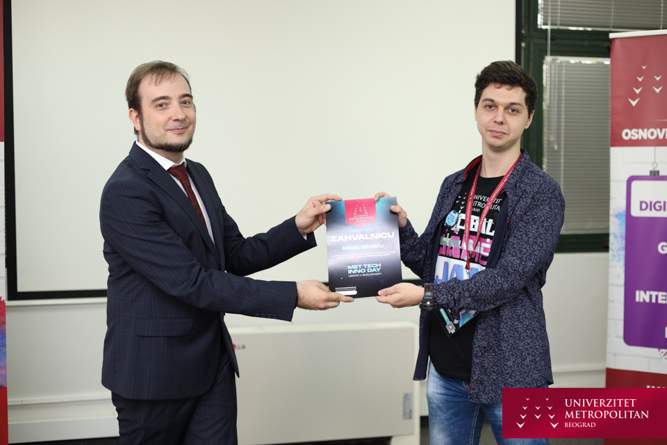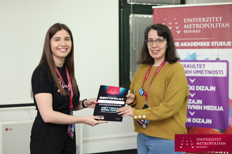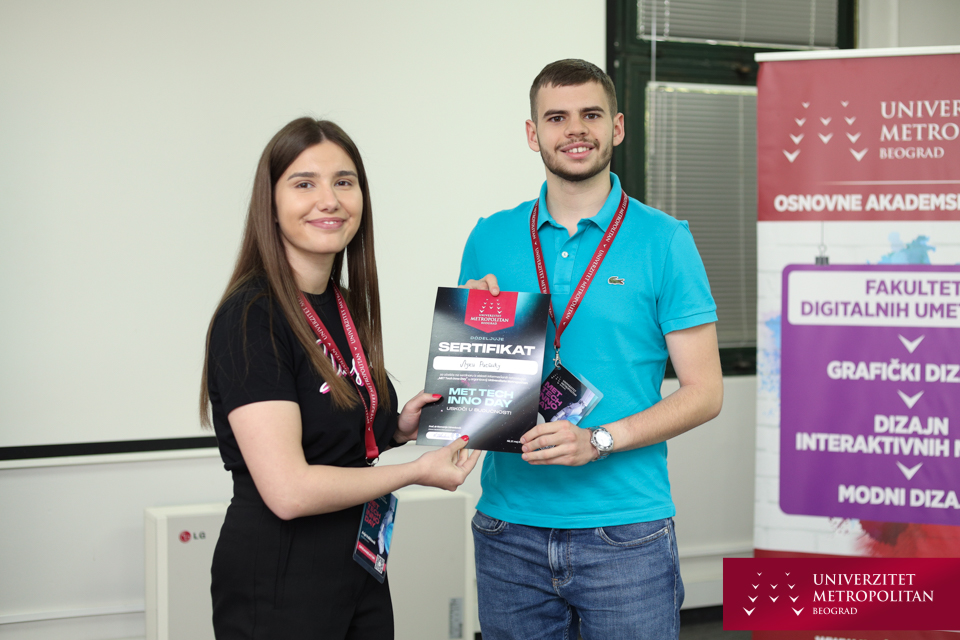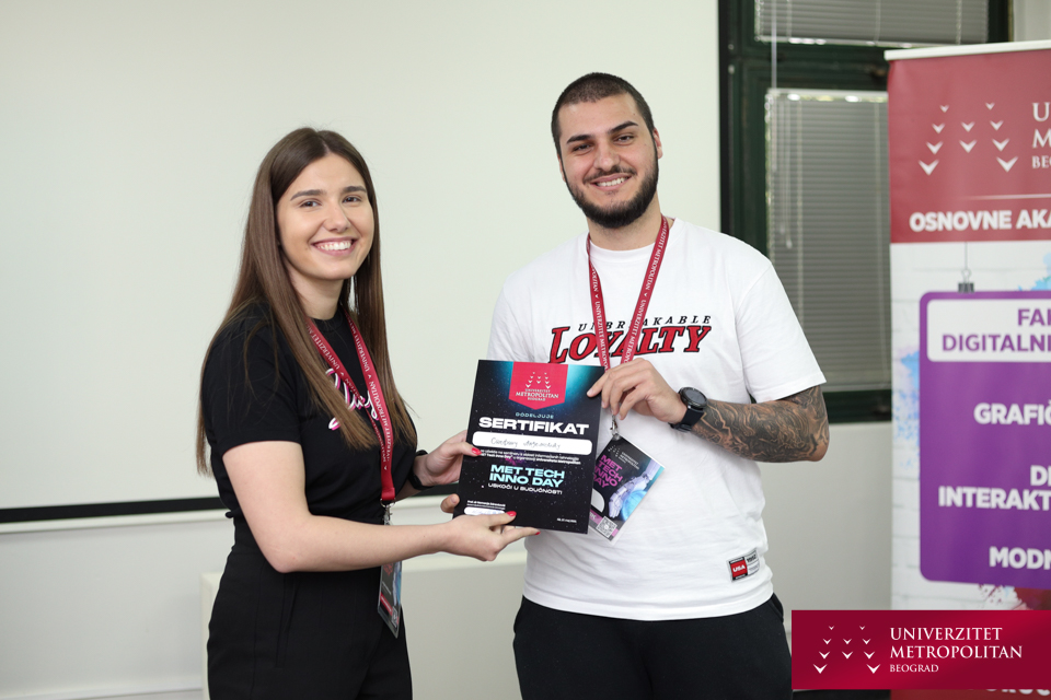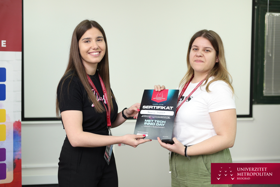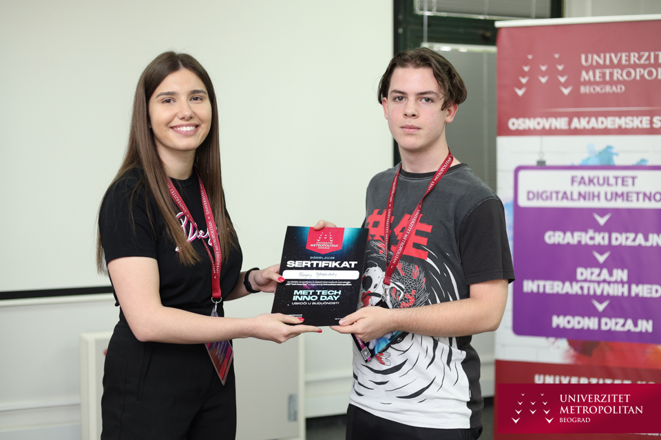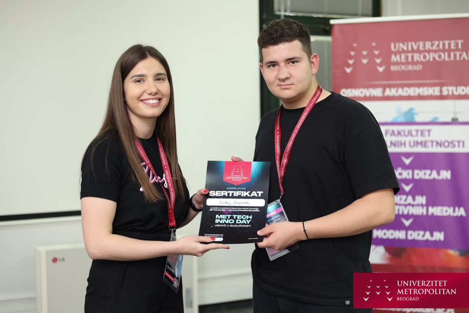 Svi učesnici  dobili su i SERTIFIKAT Univerziteta Metropolitan za učešće na MET TECH INNO DAY-u. Sertifikat omogućava oslobođenje od polaganja prijemnog ispita za sve one koji budu zainteresovani da upišu osnovne akademske studije na Fakultetu informacionih tehnologija.