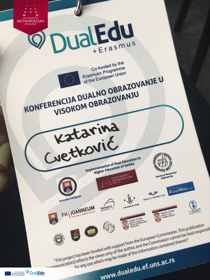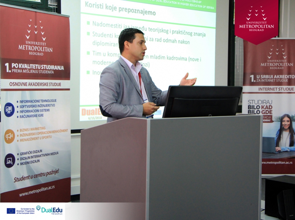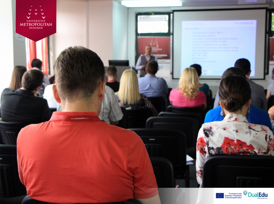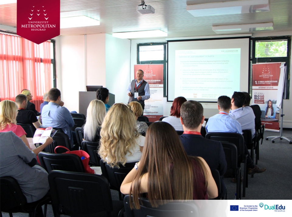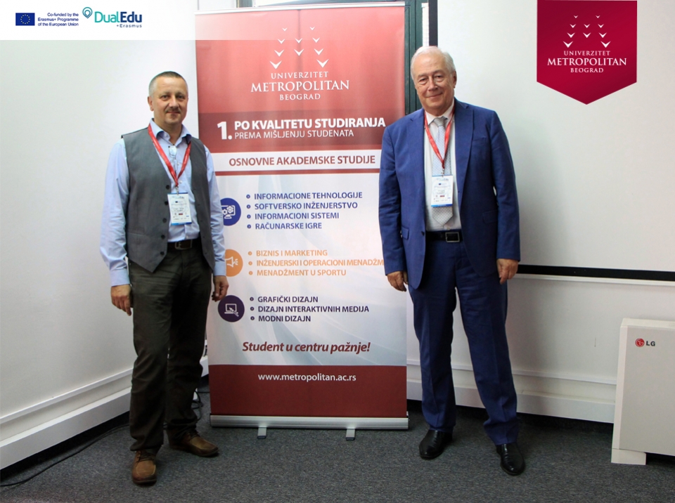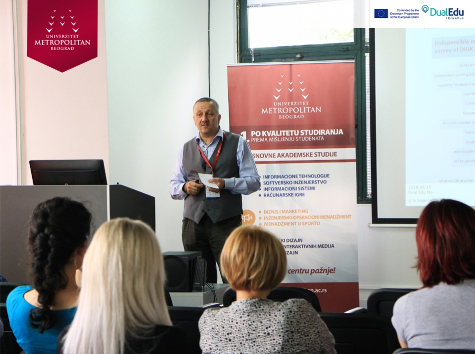 Konferencija na temu „DUALNO OBRAZOVANJE U VISOKOM OBRAZOVANJU“, održana na Univerzitetu Metropolitan u Nišu, uz prisustvo predstavnika obrazovnih institucija i direktora vodećih kompanija. Konzorcijum Erasmus+ projekta „Implementation of Dual Education in Higher Education of Serbia – DualEdu“ organizovao je konferenciju sa ciljem da se kompanije upoznaju sa prednostima, koje im različiti oblici dualnog obrazovanja u visokom obrazovanju nude.