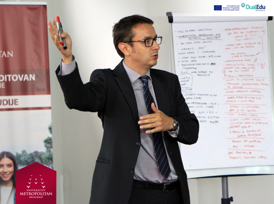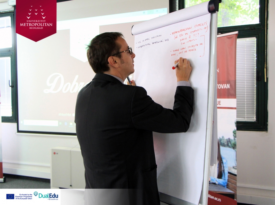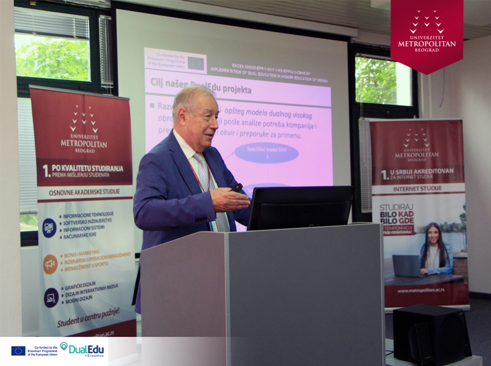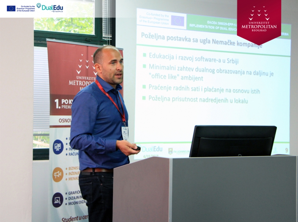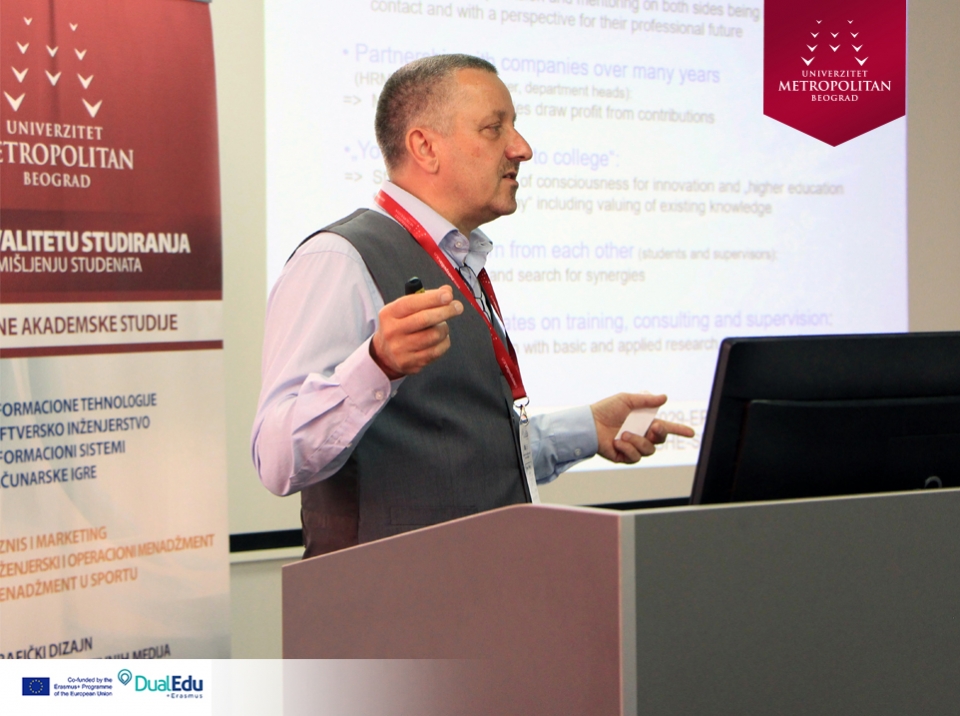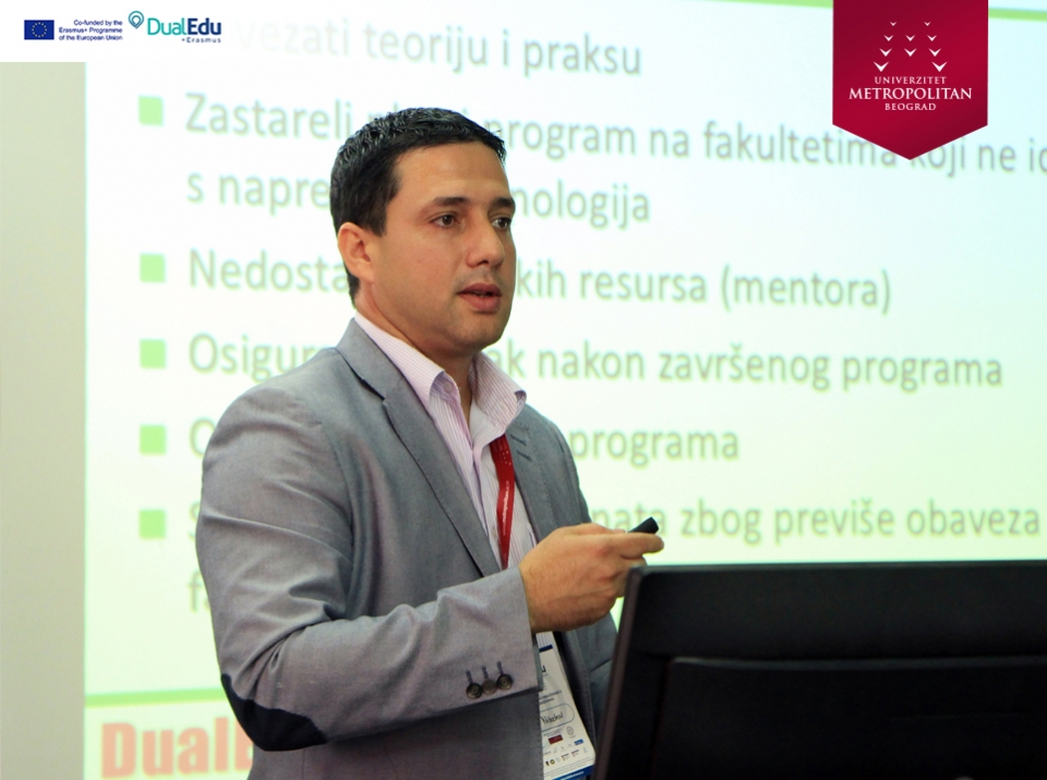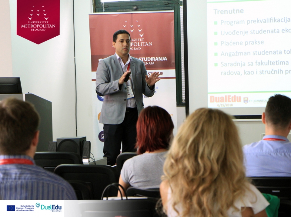 Konferencija na temu „DUALNO OBRAZOVANJE U VISOKOM OBRAZOVANJU“, održana na Univerzitetu Metropolitan u Nišu, uz prisustvo predstavnika obrazovnih institucija i direktora vodećih kompanija. Konzorcijum Erasmus+ projekta „Implementation of Dual Education in Higher Education of Serbia – DualEdu“ organizovao je konferenciju sa ciljem da se kompanije upoznaju sa prednostima, koje im različiti oblici dualnog obrazovanja u visokom obrazovanju nude.