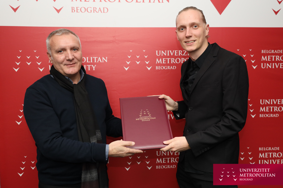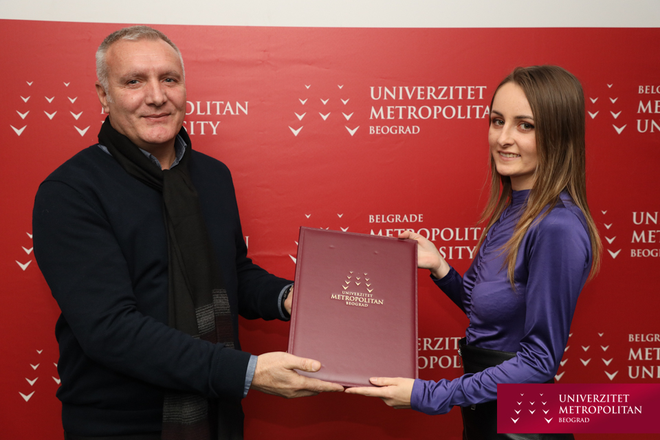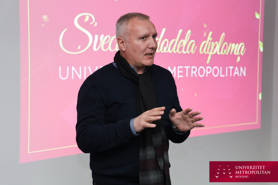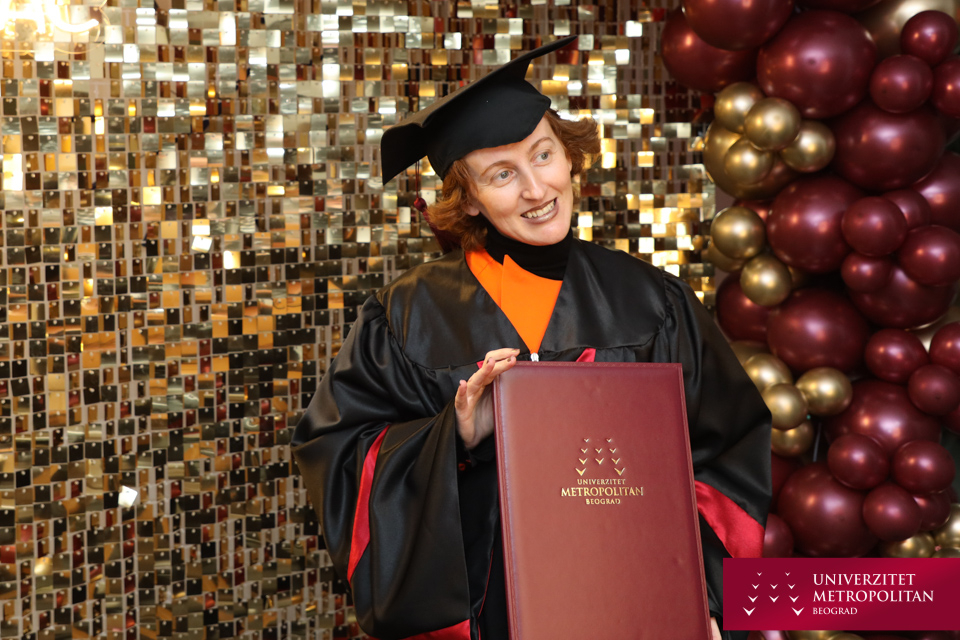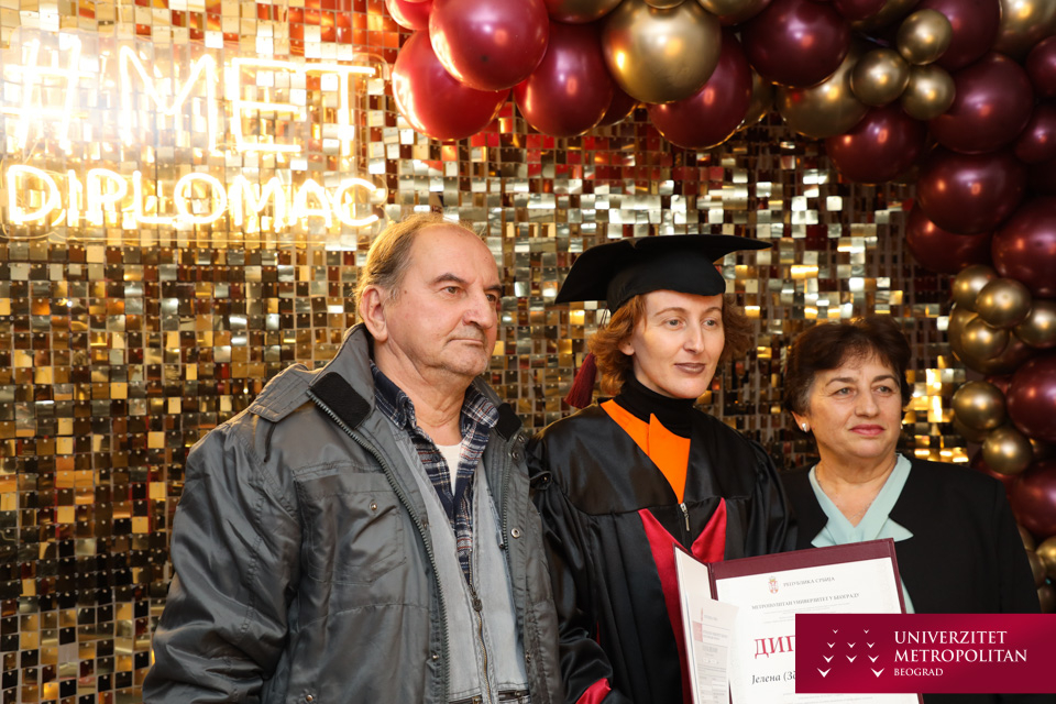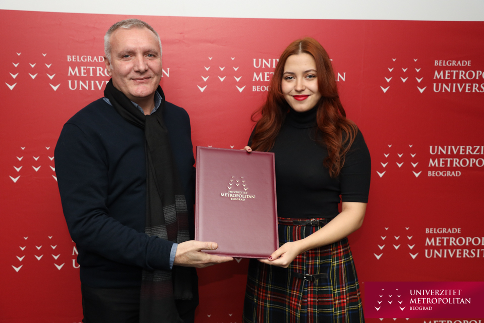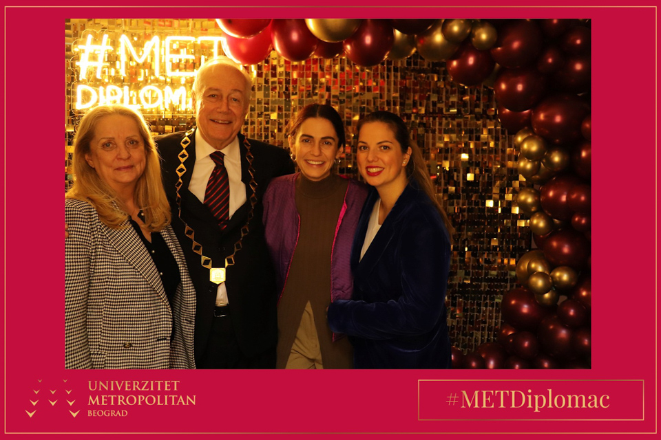 Dodela diploma je održana na Univerzitetu Metropolitanu u Beogradu. Na početku svečane ceremonije prisutne je pozdravio osnivač i predsednik Univerziteta, profesor dr Dragan Domazet i istakao koliko je rada i pažnje uloženo u svakog studenta i da je siguran da će diplomirani studenti UM-a imati uspešne, perspektivne, dinamične i bogate karijere.
