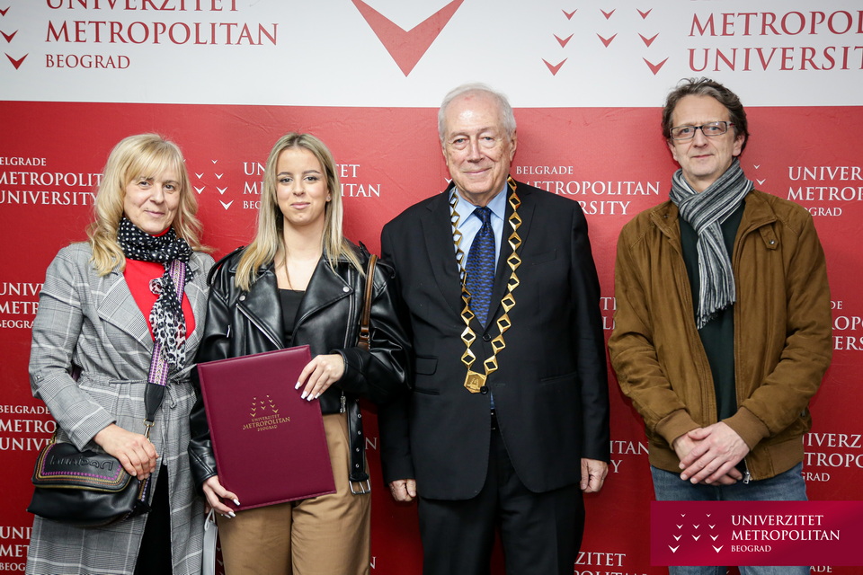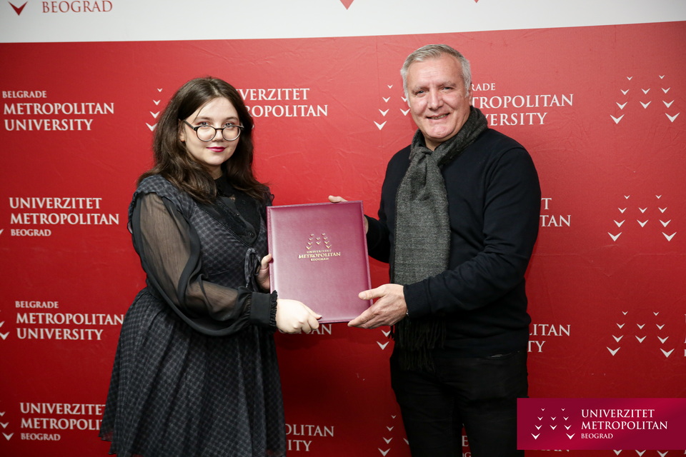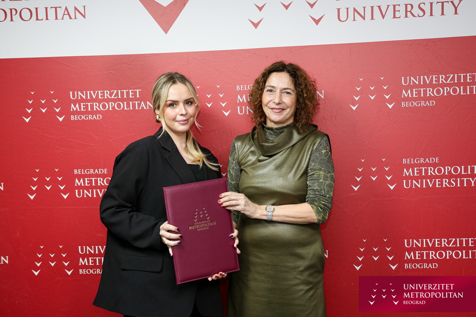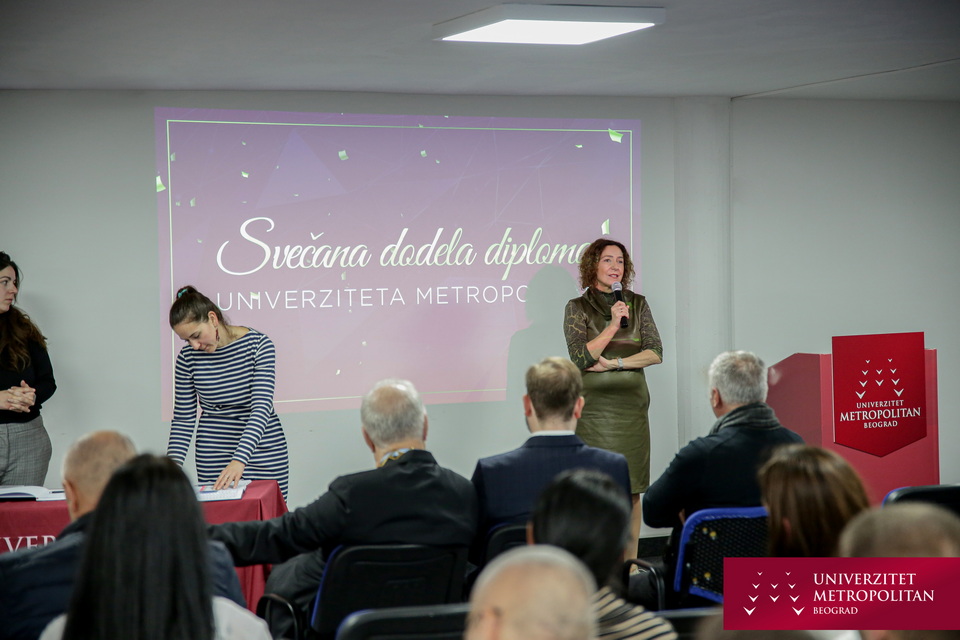 Dodela diploma je održana na Univerzitetu Metropolitanu u Beogradu. Na početku svečane ceremonije prisutne je pozdravio osnivač i predsednik Univerziteta, profesor dr Dragan Domazet, koji je takođe ovom prilikom dodelio povelje najboljim MET studentima da svih godina studija i studijskih programa.