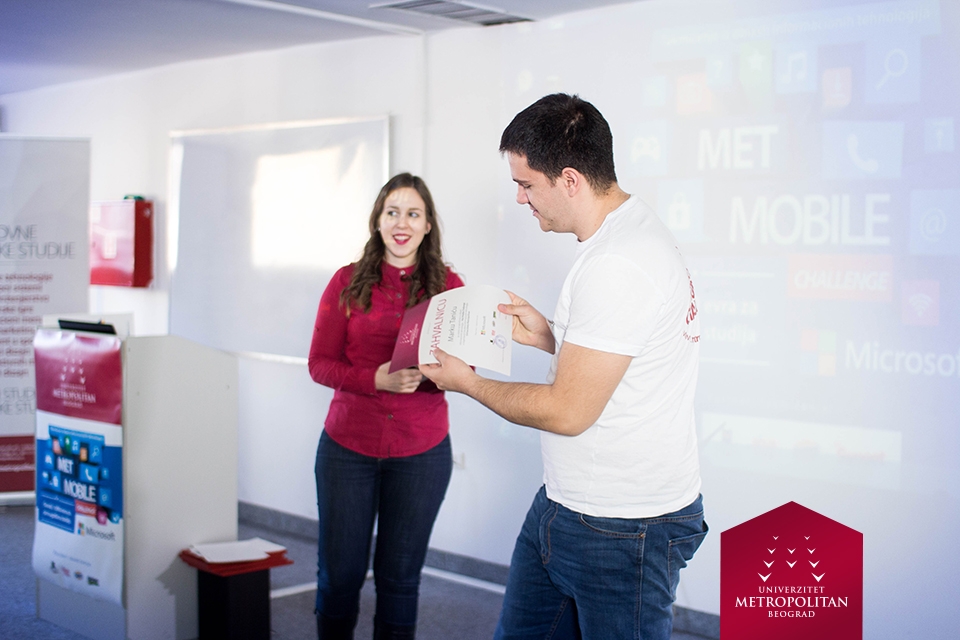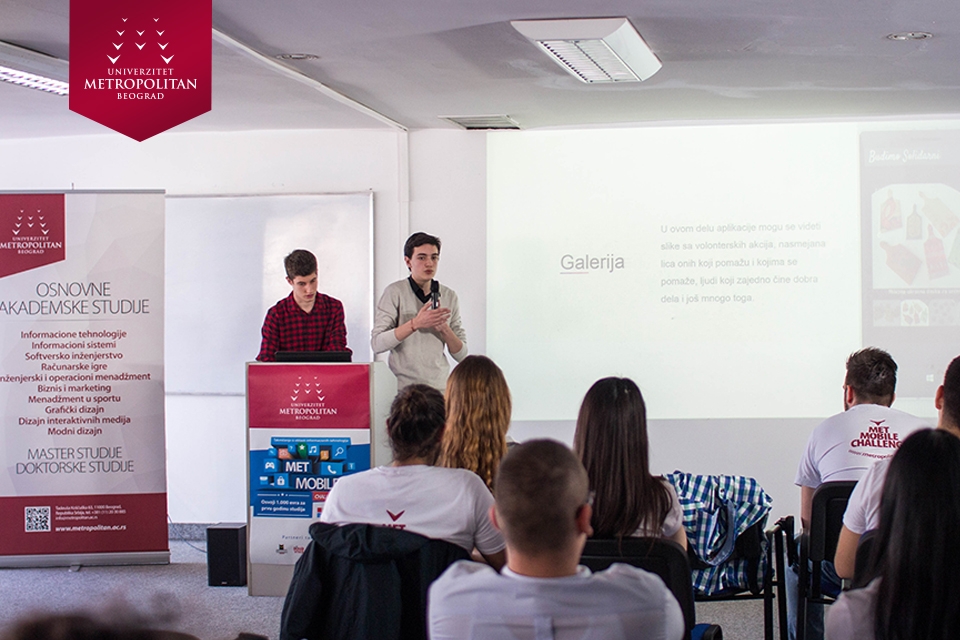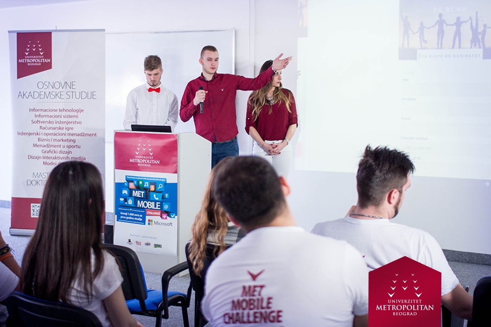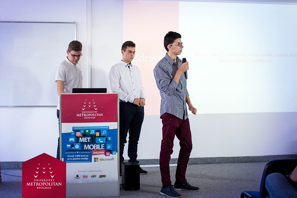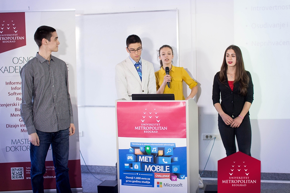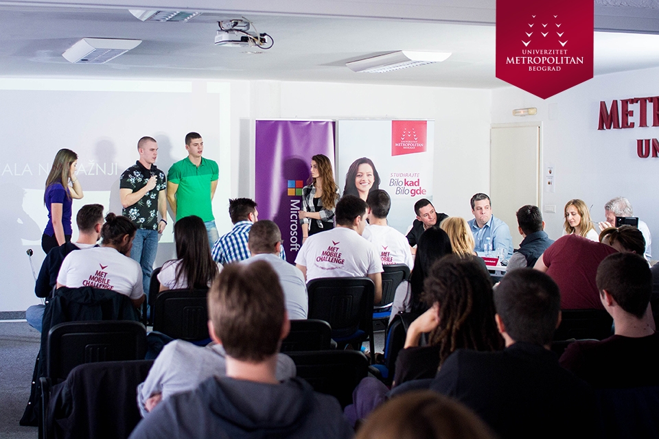 4.03.2017.Univerzitet Metropolitan uz podršku kompanije Microsoft danas je uspešno realizovao finale takmičenja za učenike srednjih škola iz oblasti informacionih tehnologija – „Met Mobile Challenge“.