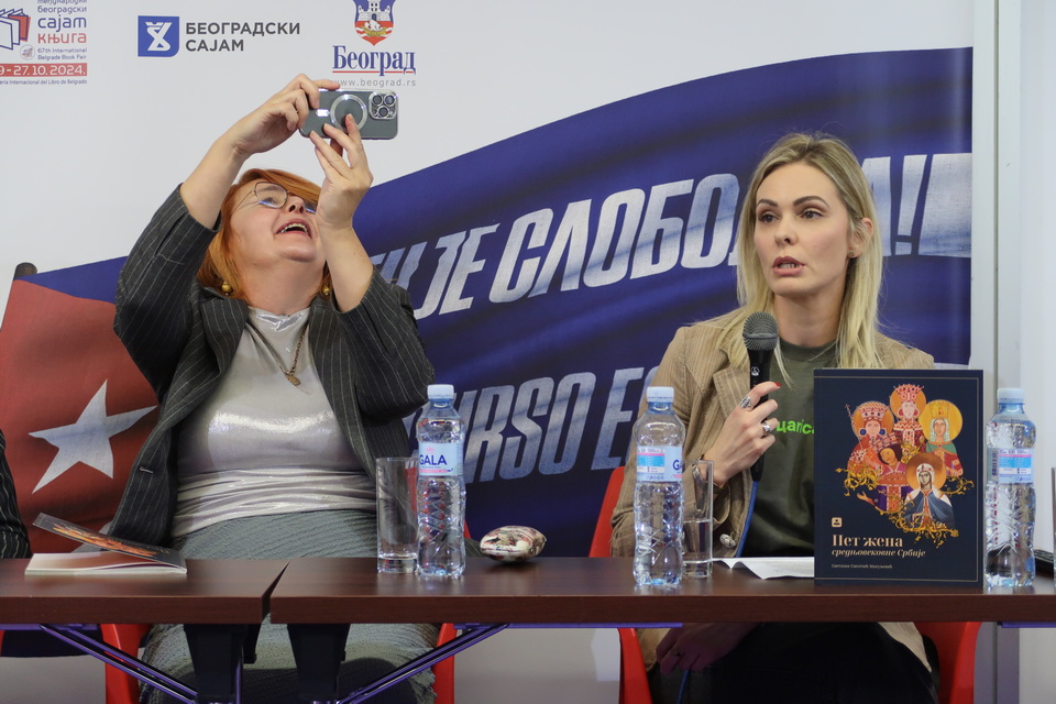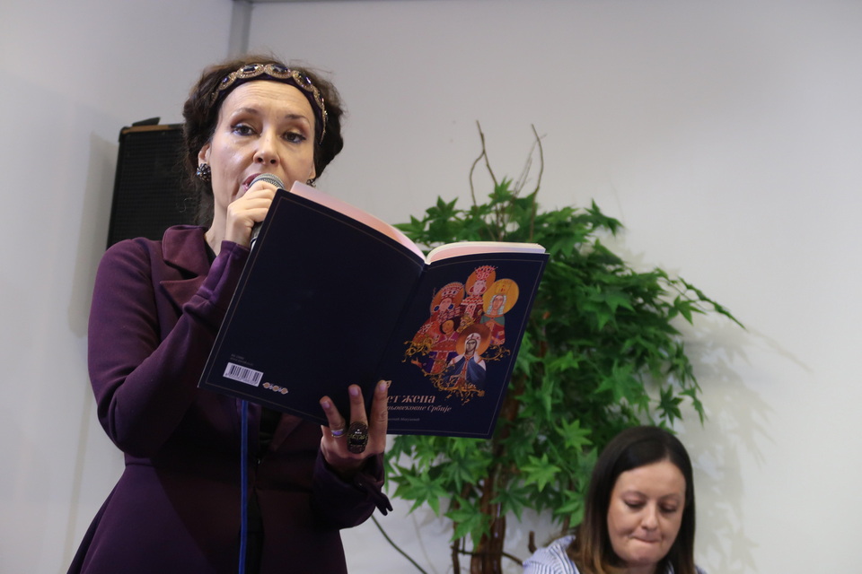 Prvakinja Narodnog pozorišta u Beogradu Ivana Žigon uveličala je promociju čitanjem stihova monahinje Jefimije iz knjige.