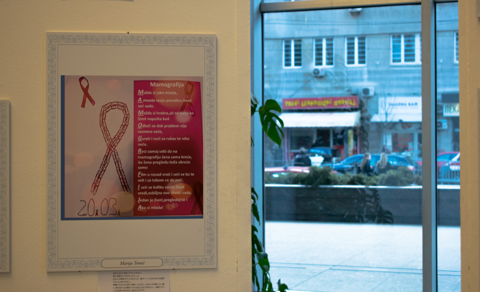 Kreativni konkurs je održan u okviru Projekta za unapređenje Nacionalnog programa za rano otkrivanje raka dojke koji sprovode Japanska agencija za međunarodnu saradnju – JICA, Ministarstvo zdravlja Republike Srbije i Institut „Dr Milan Jovanović Batut“. U izboru radova i ocenjivanju je učestvovalo 26 članova žirija iz Japana i Srbije, što je svakako još veća pohvala za našu studentkinju i njen rad koji predstavlja podizanje svesti o opakoj bolesti na koju sve žene treba da obrate pažnju i na vreme je otkriju.