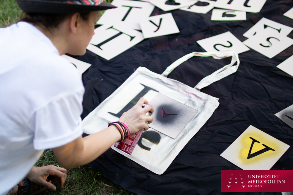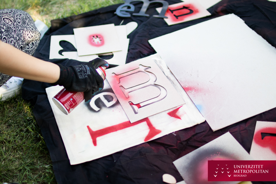 Na ovoj radionici svi učesnici kreirali su svoju prvu tipografsku kompoziciju šablonima i sprejevima i naučili nešto više o fontovima i tipografiji. Radovi koje su stvarali, ovom prilikom, rađeni su čuvenom stencil tehnikom potpuno spontano i intuitivno direkno na cegerima.