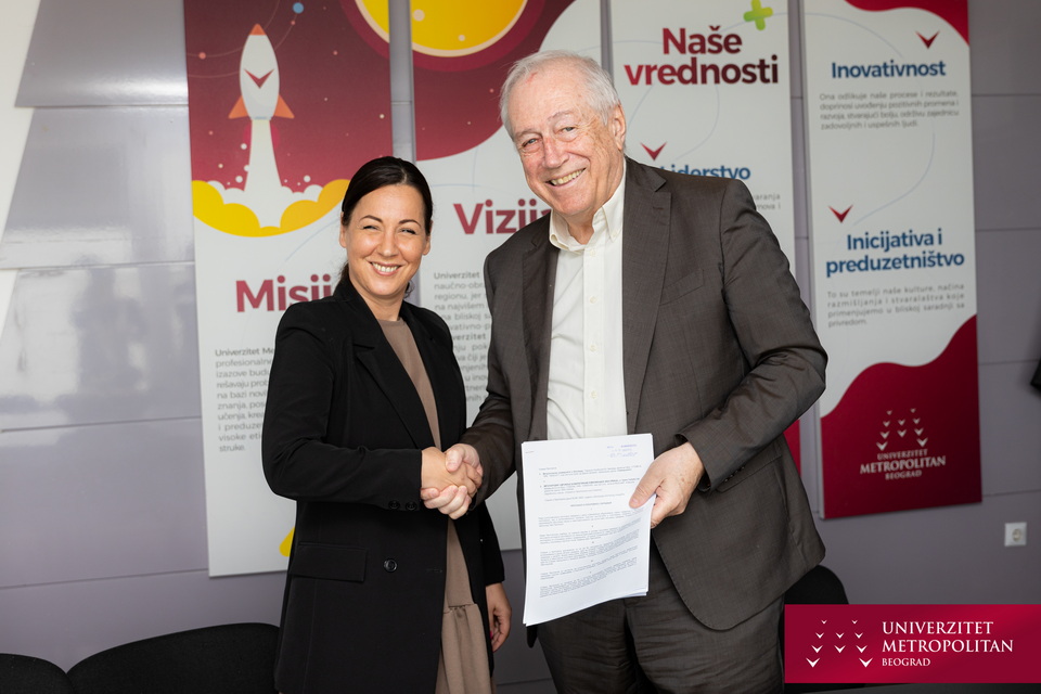 Protokol su potpisali Prof. dr Dragan Domazet, predsednik Univerziteta Metropolitan u Beogradu i Jelena Ivanović, Izvršna direktorka IAA Srbija.
