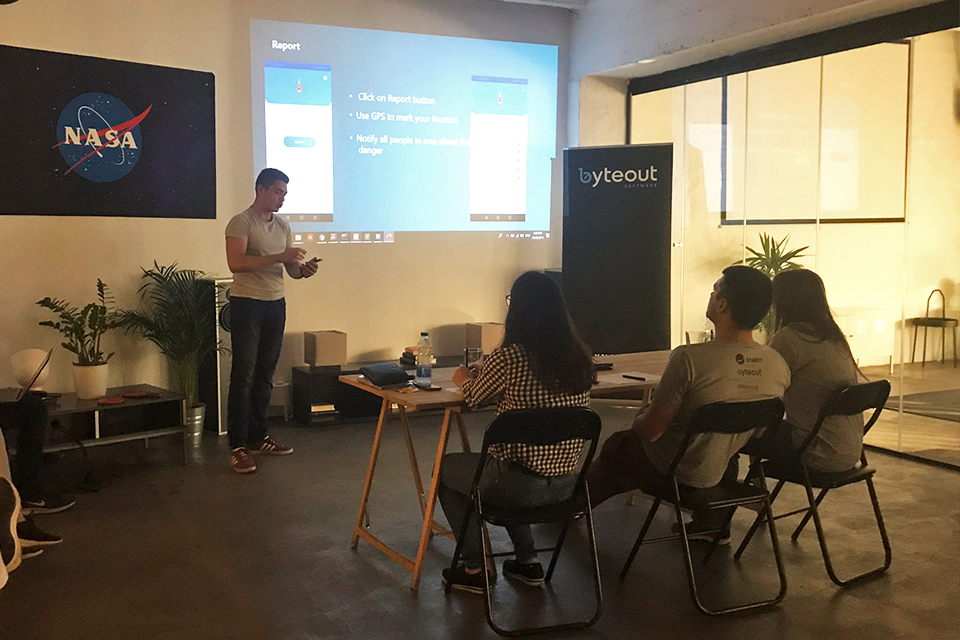 Tim naših FIT studenata pod nazivom Krobacorp, je osvojio 1. mesto, a u mnoštvu ponuđenih tema na osnovu kojih su mogli da iskažu svoju programersku ideju, izabrali su – Spot that fire: „Imali smo mnogo ideja i na kraju smo se odlučili da napravimo aplikaciju koja bi uključila sve ljude da pomognu u borbi protiv požara. Aplikacija šalje lokaciju osobe koja je prijavila požar serveru, a on potom šalje svim ljudima u okruženju od 1km koji imaju našu aplikaciju, da se požar dešava u njihovoj okolini. Veći deo projekta smo završili tokom prvog dana hakatona, a ostatak smo završili drugog dana, kada smo rad našeg tima prezentovali stručnom žiriju kome se ceo concept ideje izuzetno svideo“ – rekao je stipendista i student Nemanja Stepić.