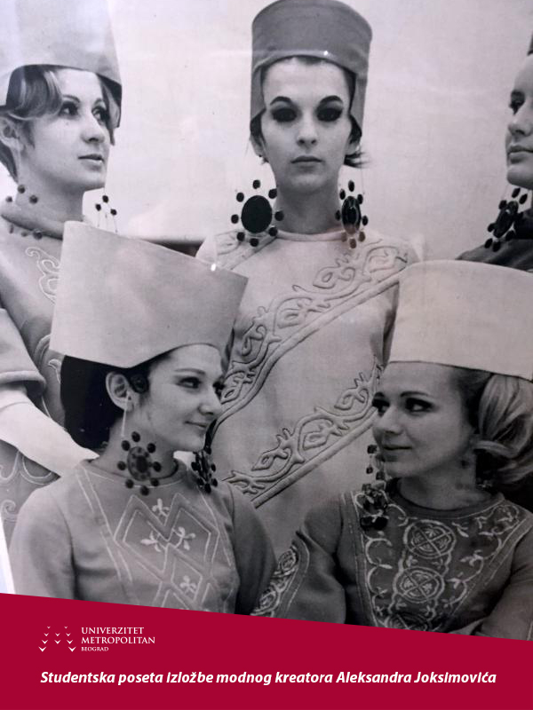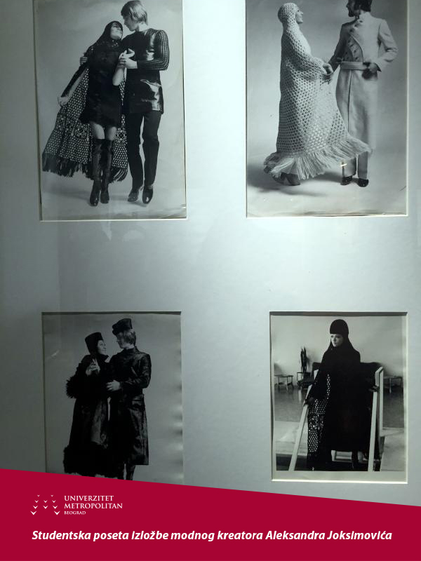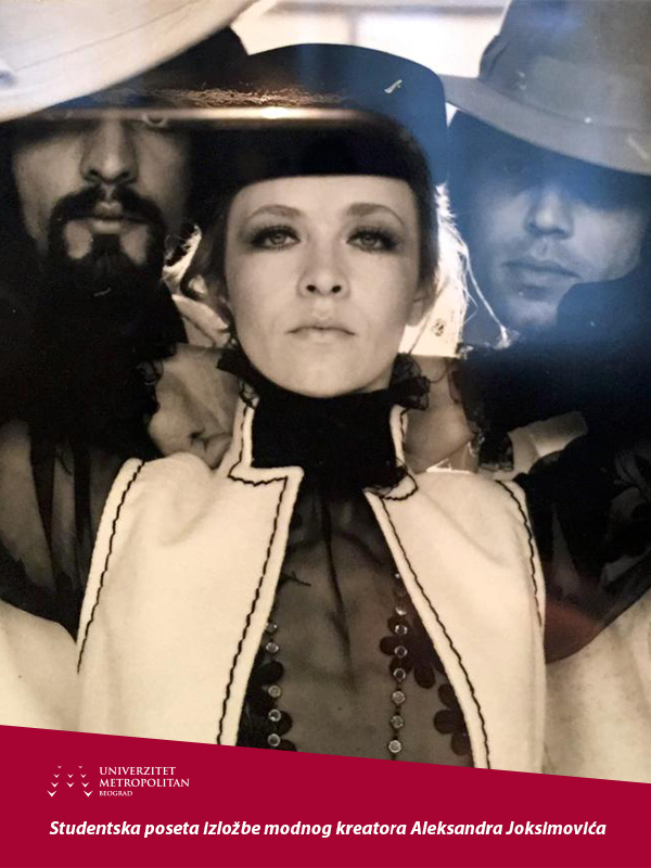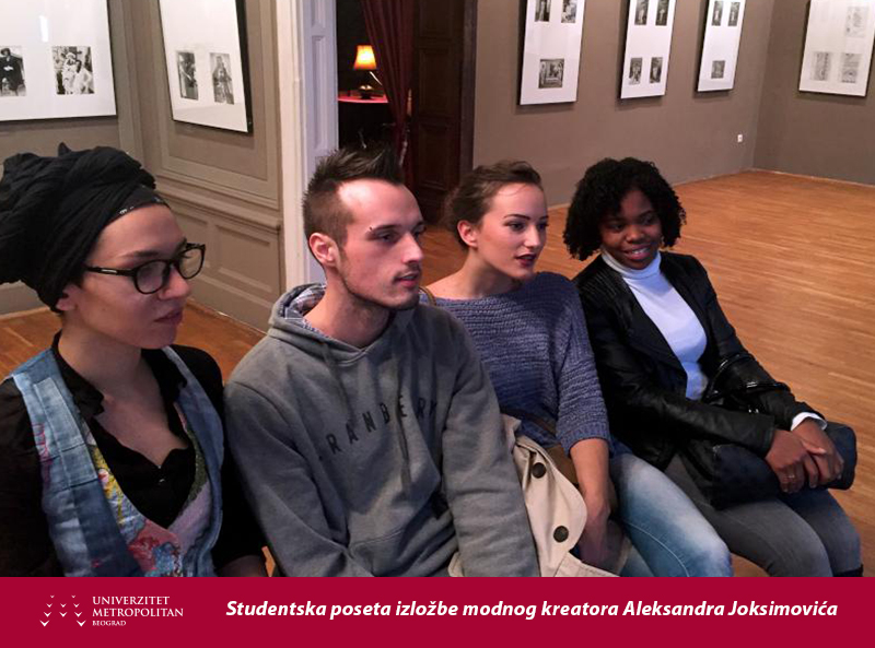 20.10.2015.Studenti treće i četvrte godine dizajna Univerziteta Metropolitan u okviru predmeta Istorija moderne umetnosti posetili su zajedno sa profesorkom Svetlanom Smolčić Makuljević izložbu modnog dizajnera Aleksandra Joksimovića otvorenu u Muzeju primenjene umetnosti u Beogradu.