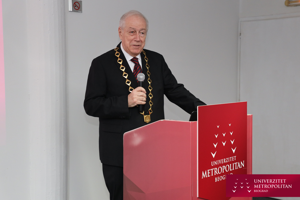 Predsednik Univerziteta Metropolitan, profesor dr Dragan Domazet se obratio prisutnima, čestitao svima na uspešnoj godini koja je iza nas i benefitima koji su ostvareni zajedničkim trudom, a tim povodom i svečano uručio povelje najboljim studentima, zajedno sa dekanima: profesorom Miletom Kocevom za Fakultet digitalnih umetnosti, profesorkom dr Miroslavom Raspopović Milić za Fakultet informacionih tehnologija i profesorom dr Vladimirom Škorićem, dekanom Fakulteta za menadžment.