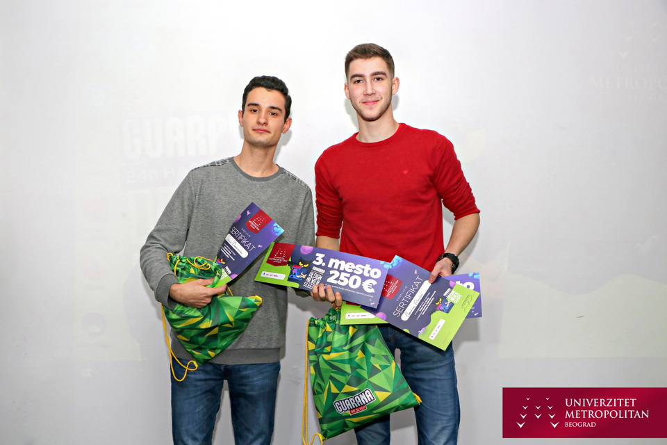 Prvo mesto i vrednu nagradu od po 1.000€ za prvu godinu studija na Fakultetu digitalnih umetnosti osvojio je tim Hydrox, iz srednje škole za dizajn, iz Beograda: Milica Pavlović, Anja Nastić, Tamara Kolevski i Tara Krivokapić. Pobedničkom timu nagradu je svečano uručila Marijana Pantović ispred Guarane i poželela još mnogo pobeda u budućnosti, obzirom da se tim Hydrox prvi put prijavio za takmičenje ovog tipa.