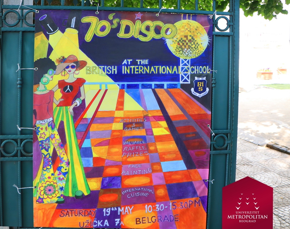 23.05.2018.U okviru BRITISH INTERNATIONAL SCHOOL na Dedinju, organizovan je još jedan humanitarni bazar sa temom – „SEVENTIES DISCO“. Univerzitet Metropolitan je bio jedan od učesnika ovog divnog događaja, gde su za humanitarnu svrhu izloženi radovi „Artists Anonymous Belgrade“, neprofitabilne organizacije koja se bavi socijalno angažovanim dizajnom i koja udružuje dizajnere iz različitih branši sa sloganom – Mi kreiramo, Vi kupujete, Mi doniramo!