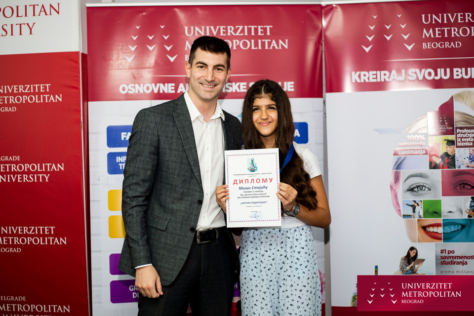 Od svog osnivanja, Univerzitet Metropolitan podržava talenat mladih stipendijama, za sve četiri godine osnovnih akademskih studija na, za osvojena prva tri mesta na republičkim takičenjima iz oblasti informatike. Ovom prilikom stipendija za studije na Fakultetu informacionih tehnologija, za sve 4 godine uručena je Rajku Lapčeviću, učeniku VIII gimanzije, koji je osvojio III mesto na smotri istraživačkih radova učenika srednjih škola i III mesto na Internacionalnoj konferenciji mladih naučnika.