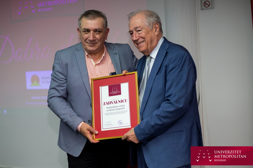 14.06.2023.U utorak 13. juna na Univerzitetu Metopolitan u Beogradu, održana je svečana dodela diploma Regionalnog centra za talente Beograd II. Tom prilikom diplome su uručene pobednicima republičkih takmičenja po naučnim oblastima, kao i na osnovu istraživačkih radova mladih talenata Srbije. Univerzitet Meropolitan i Regionalni centar za talente Beograd II već 17 godina uspešno sarađuju. Ovom prilikom odlučili smo tu saradnju da obeležimo i ugostimo najuspešnije polaznike Centra i zajedno im dodelimo nagrade za školsku 2022/2023 godinu.