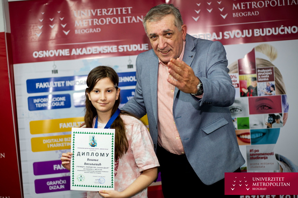 Svečanu dodelu nagrada otvorio je Nikola Srzentić, rukovodilac Regionalnog centra za talente Beograd II, a sve prisutne pozdravila je profesorka dr Dragan Domazet, predsedink Univerziteta Metropolitan. Profesor je čestitao pobednicima u ime Univerziteta Metropolitan i podsetio prisutne na koje sve načine, kroz takmičenja i konkurse, mladi talenti mogu da osvoje stipednije na Univerzitetu Metropolitan.