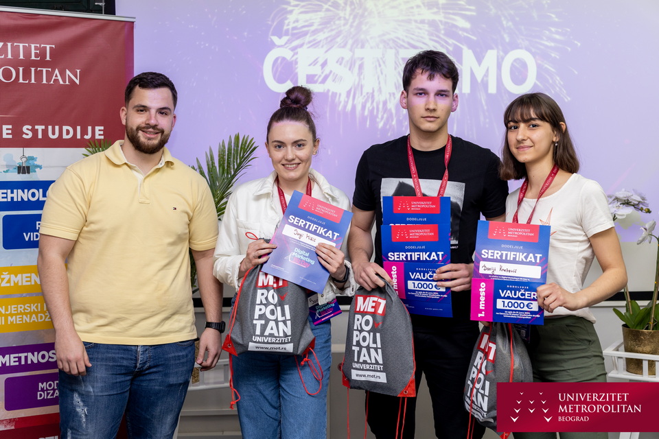 Čestitamo timovima i takmičarima koji su bili najbolji i osvojili vredne nagrade vaučere 1. mesto – 1.000€, 2. mesto 700€, 3. mesto 500€, za studije na Fakultetu za menadžment.