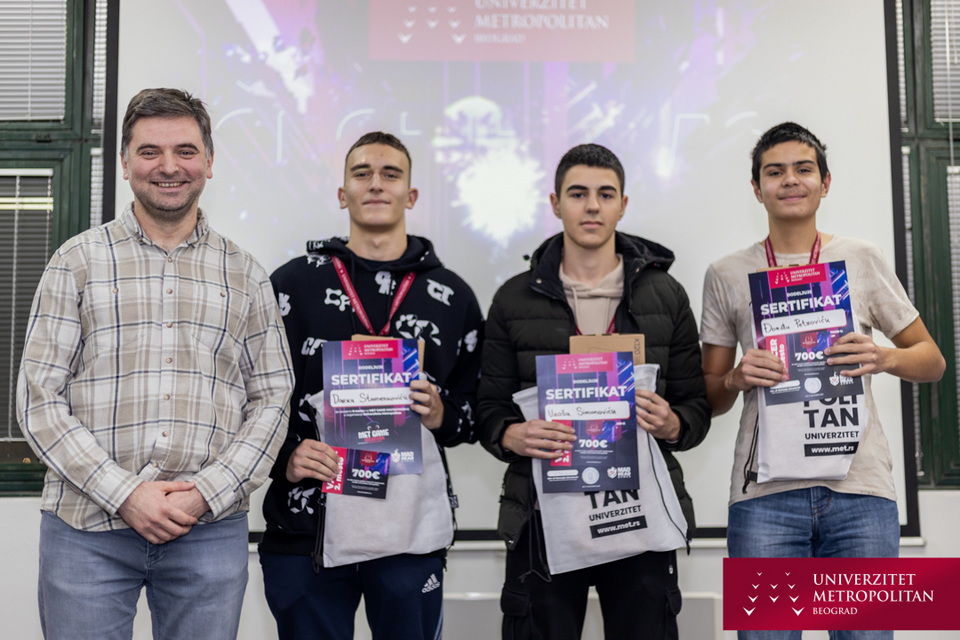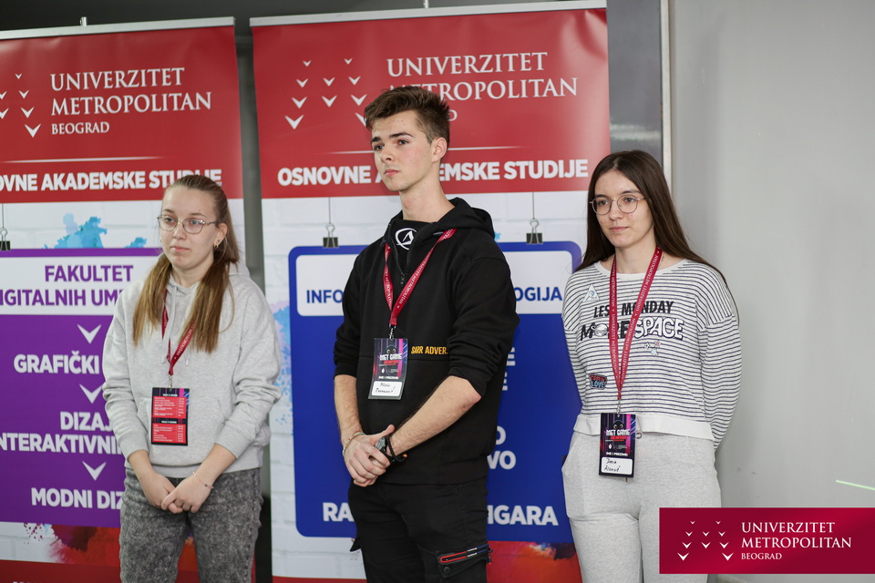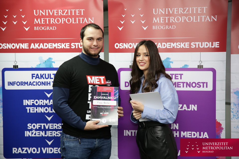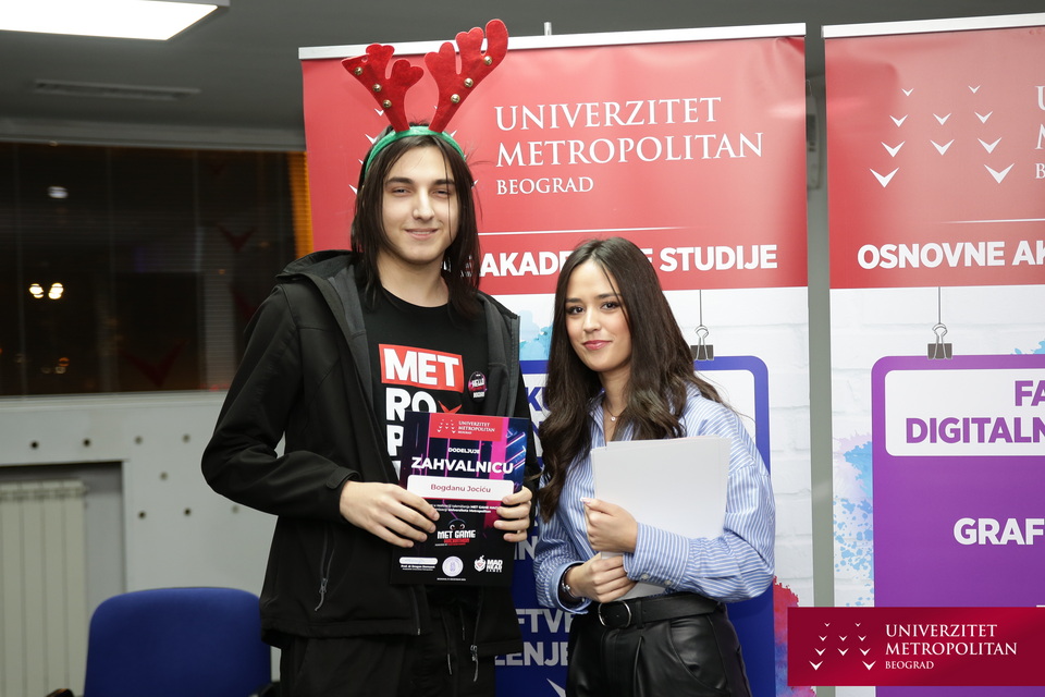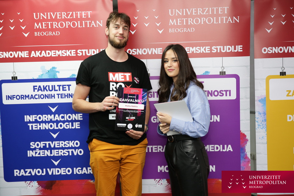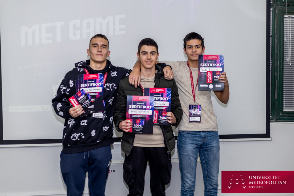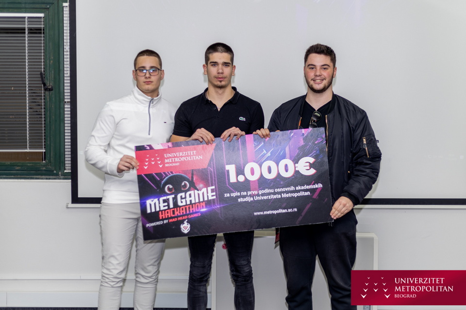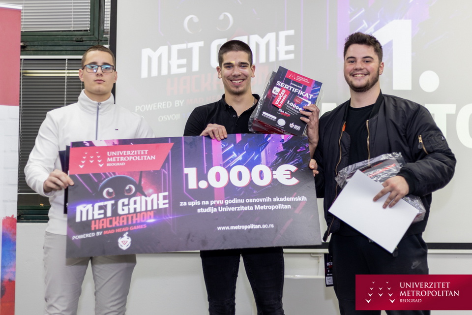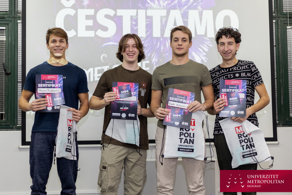 Najbolje plasirani timovi su nagrađeni vaučerima za dalje školovanje na Univerzitetu Metropolitan, dok su vredne robne nagrade stigle od partnera, MAD Head Games-a, kojima se zahvaljujemo na dugogodišnjoj podršci i saradnji.