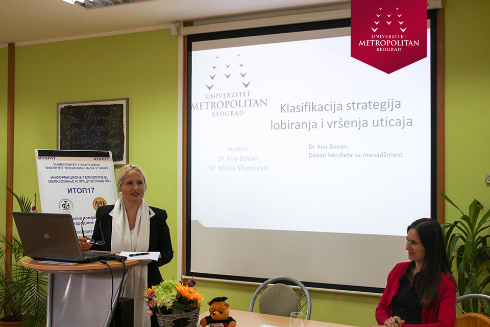 Na konferenciji ITOP17 koja je održana u Čačku, predstavio se i Univerzitet Metropolitan – profesorka dr Ana Bovan govorila o klasifikaciji strategija lobiranja i vršenja uticaja
